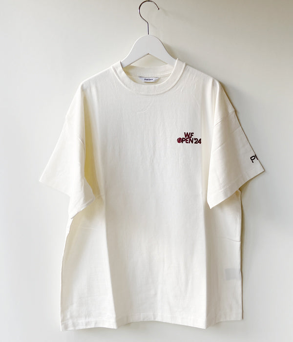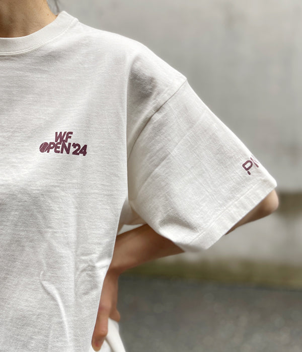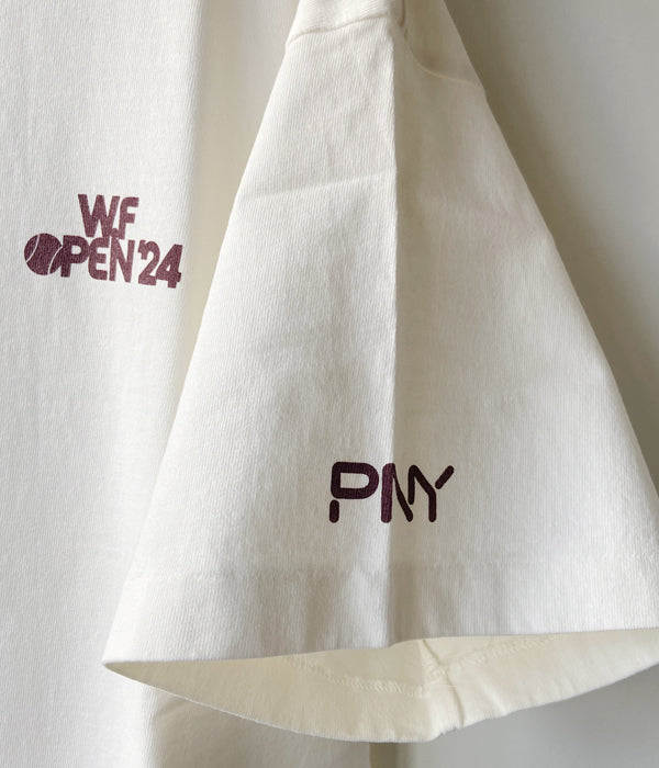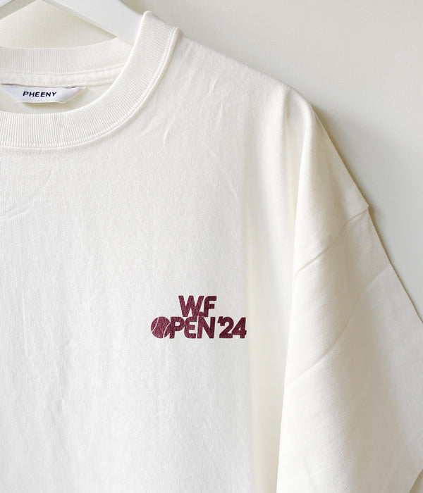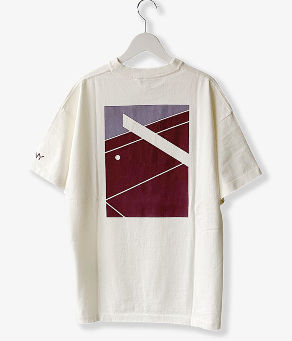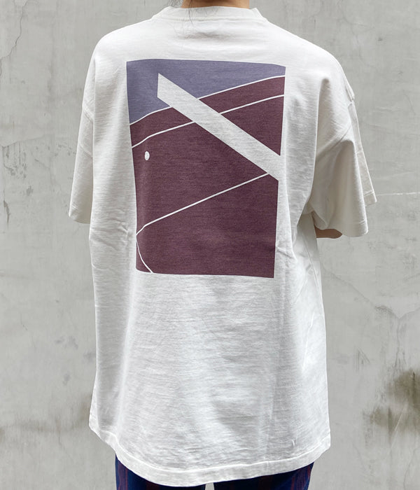 PHEENYからPRINT-T COURTが入荷しました。 テニスコートを抽象的に表現したバッグプリントが可愛いTシャツ。ロゴは90年代のスポーツメーカーをイメージ。ボディとプリントにフェードをかけて馴染みよくしています。リラックス感のあるゆったりとしたシルエットで、程よい肉感と清涼感が特徴の着心地の良い一枚です。