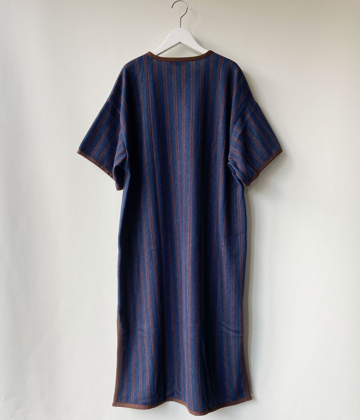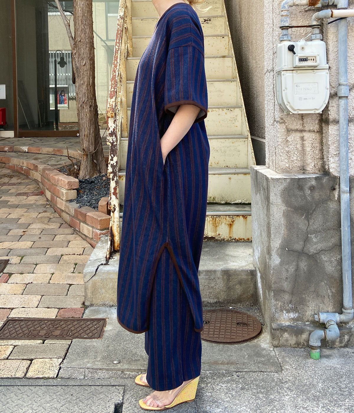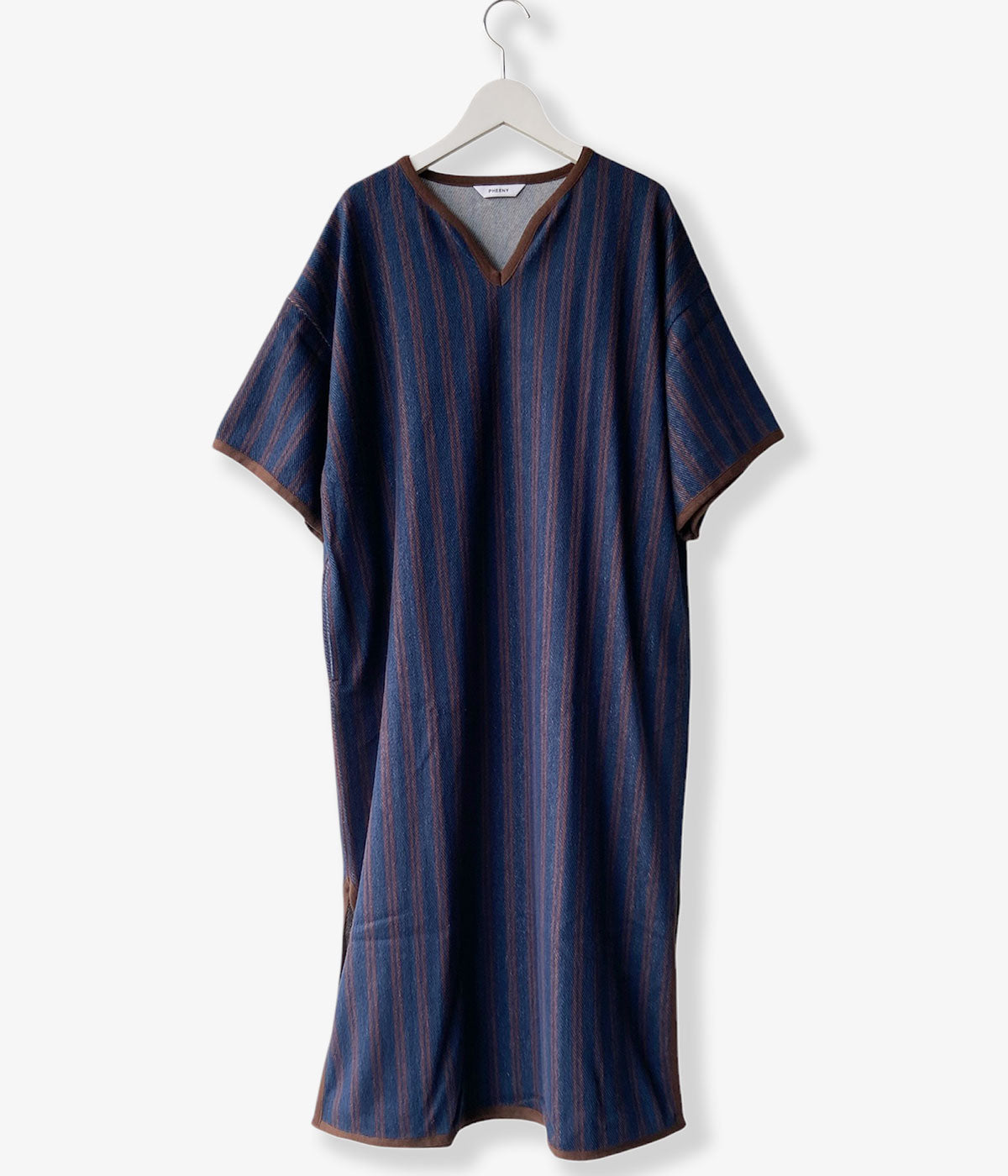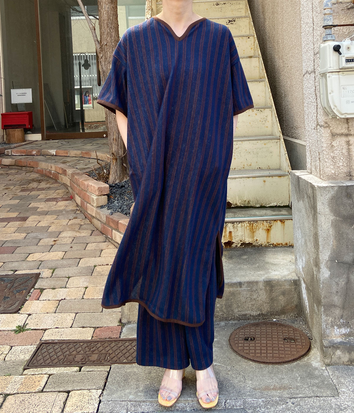 PHEENYからCOTTON INRAY STRIPE DRESSが入荷しました。夏にサラッと羽織れるポンチョドレス。衿、裾、袖口のパイピングが懐かしい印象です。デイリーはもちろん、リゾートシーンでも活躍する一枚。見た目より軽量で、柔らかい風合いが特徴です。共地のボトムとのセットアップもおすすめ。