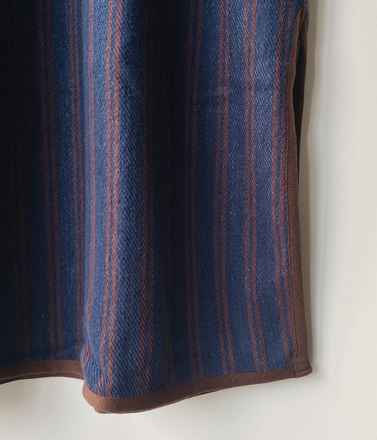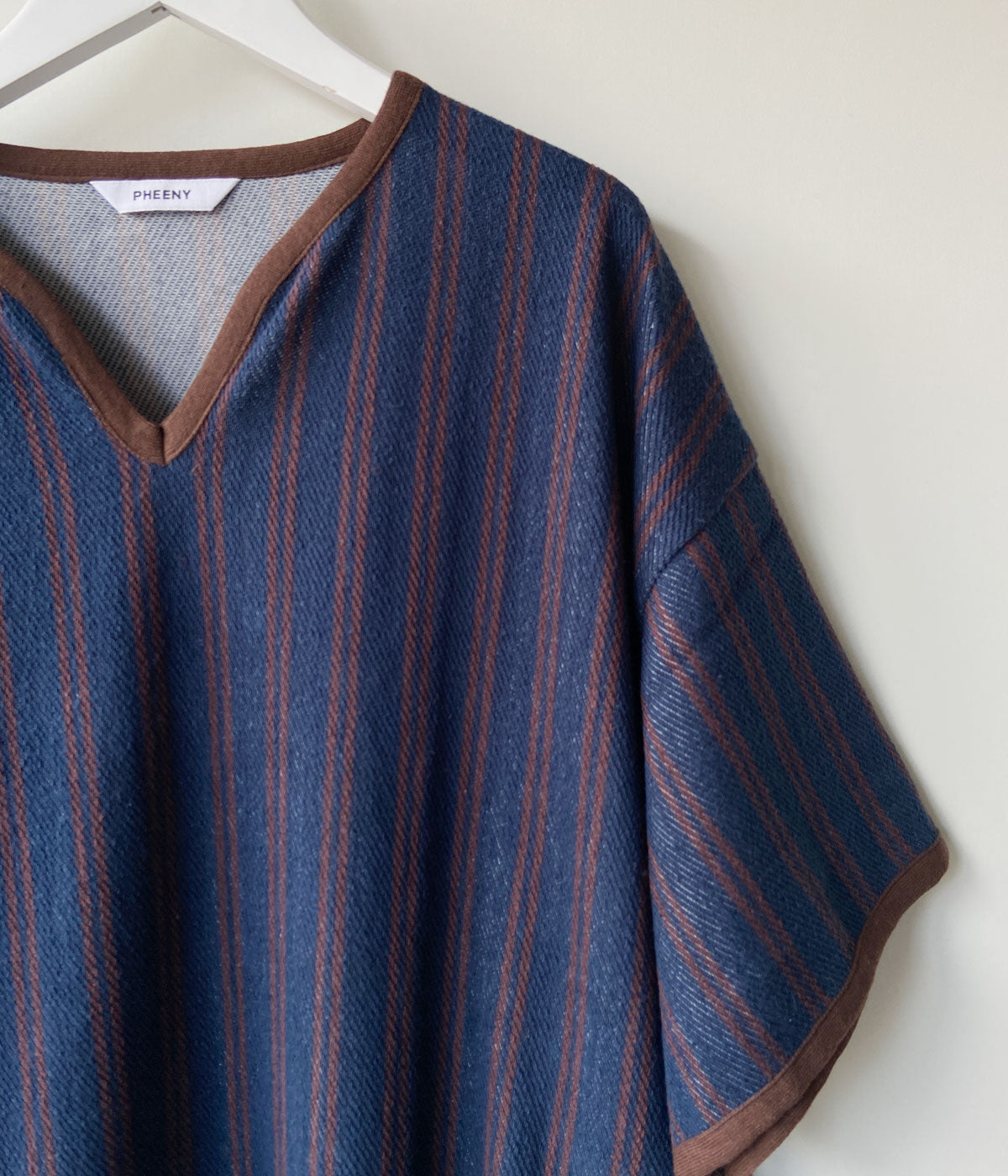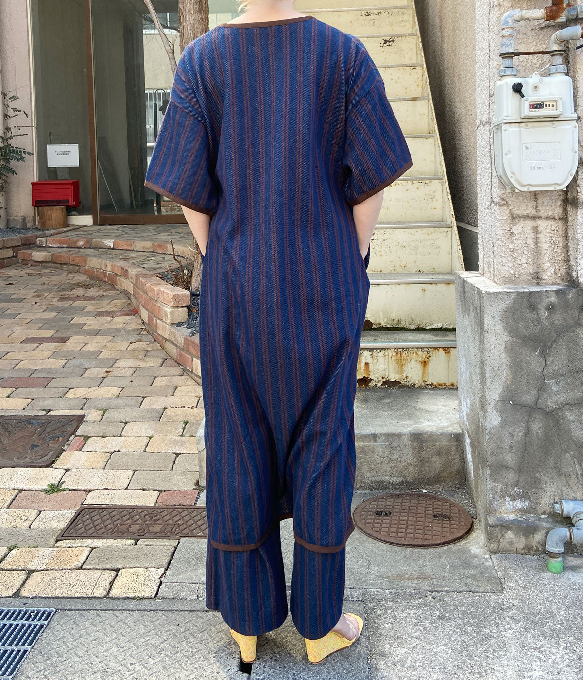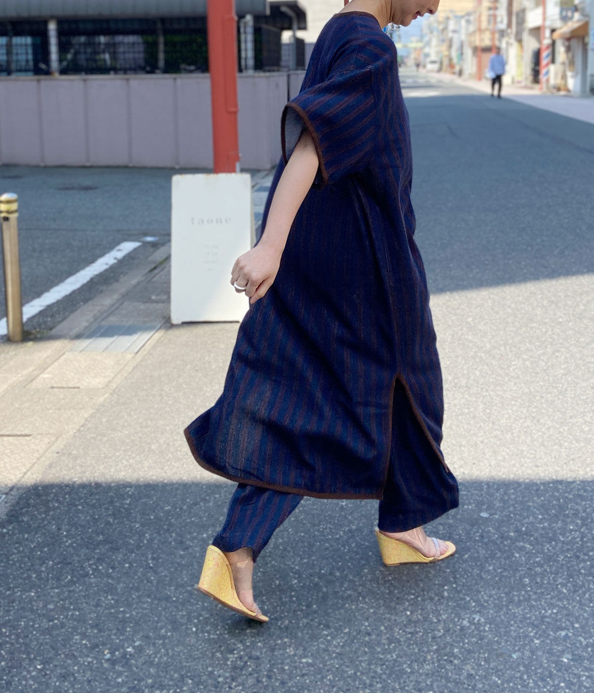 PHEENYからCOTTON INRAY STRIPE DRESSが入荷しました。夏にサラッと羽織れるポンチョドレス。衿、裾、袖口のパイピングが懐かしい印象です。デイリーはもちろん、リゾートシーンでも活躍する一枚。見た目より軽量で、柔らかい風合いが特徴です。共地のボトムとのセットアップもおすすめ。