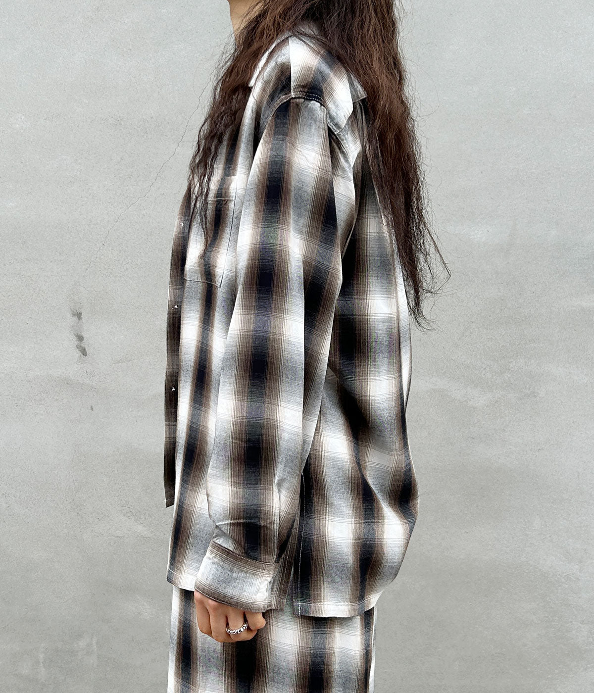 PHEENY/RAYON OMBRE CHECK L/S SHIRT(BROWN)