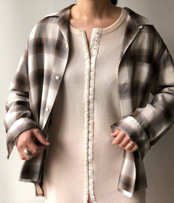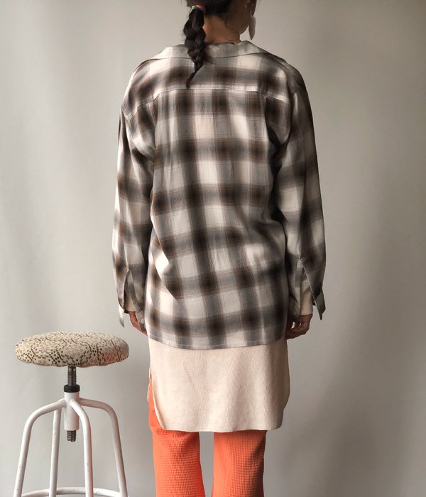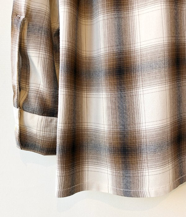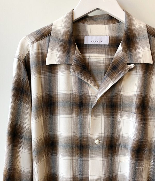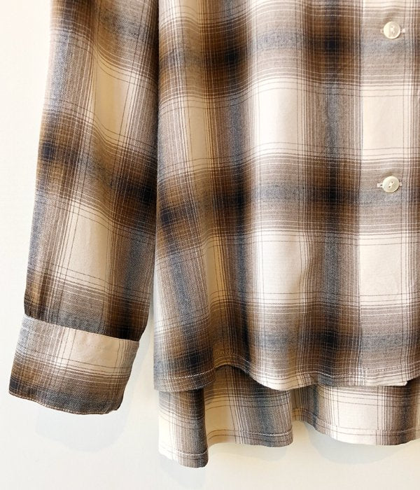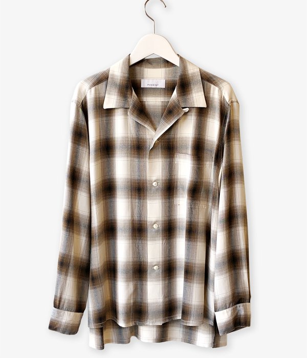 PHEENY/RAYON OMBRE CHECK OPEN COLLAR SHIRT(BROWN)