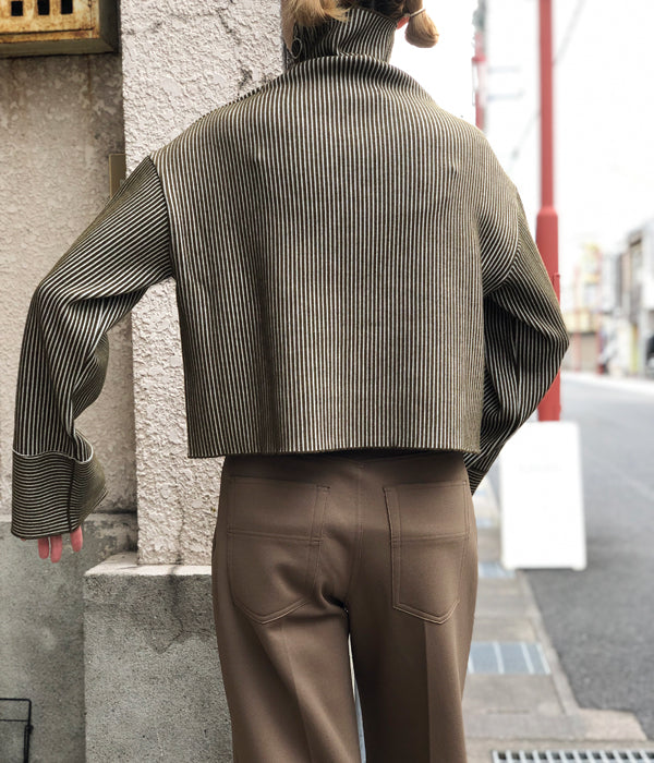 PHEENY/STRIPE SMOOTH HIGH NECK P/O(KHAKI)