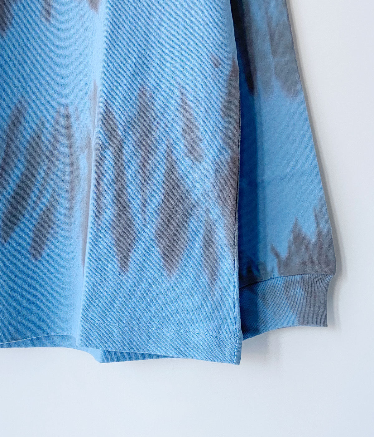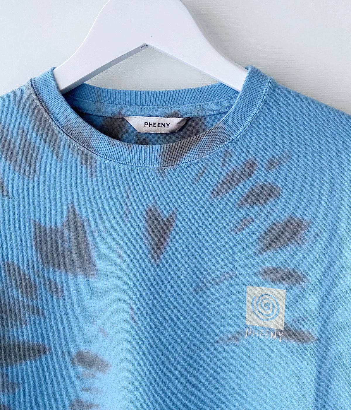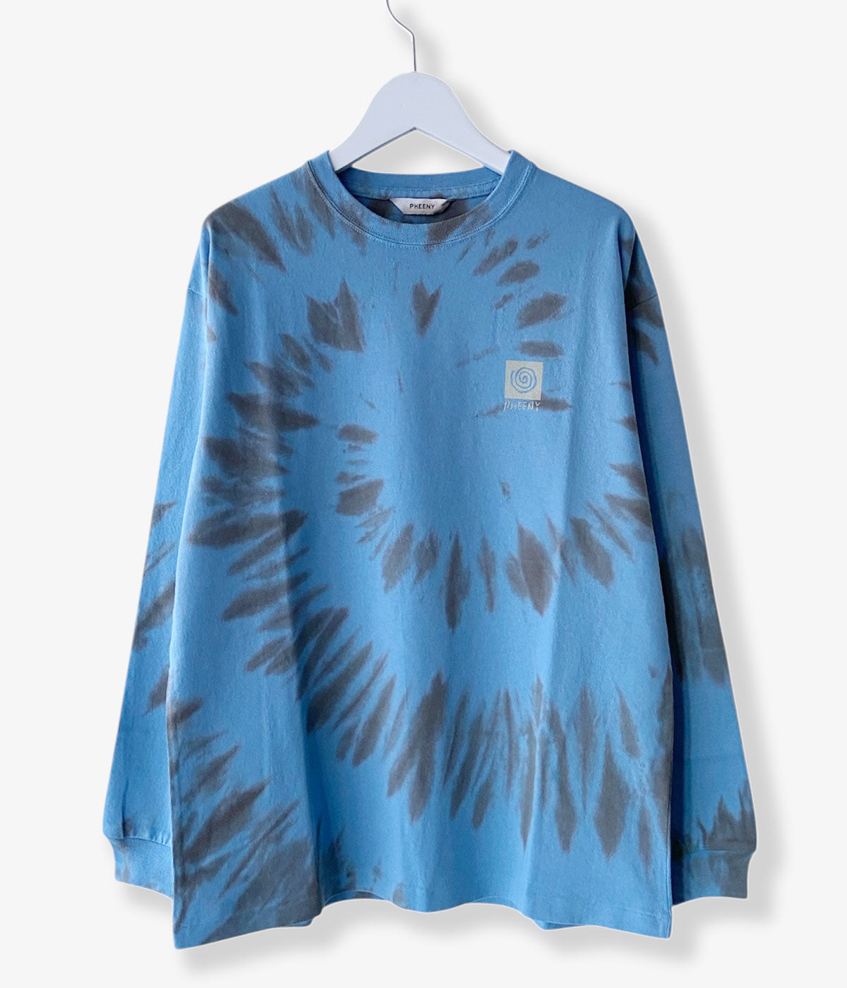 PHEENYからTIE DYE L/Sが入荷しました。デザイナーが奄美大島での泥染め体験をもとに作成したタイダイ染めのロンT。ブラウンはランダムな染め柄、ブルーは渦巻き模様、左胸と背中にはワンポイントのプリントが施されています。一枚一枚異なる、オンリーワンの一枚。着込むごとに風合いが増し、経年変化を楽しめます。