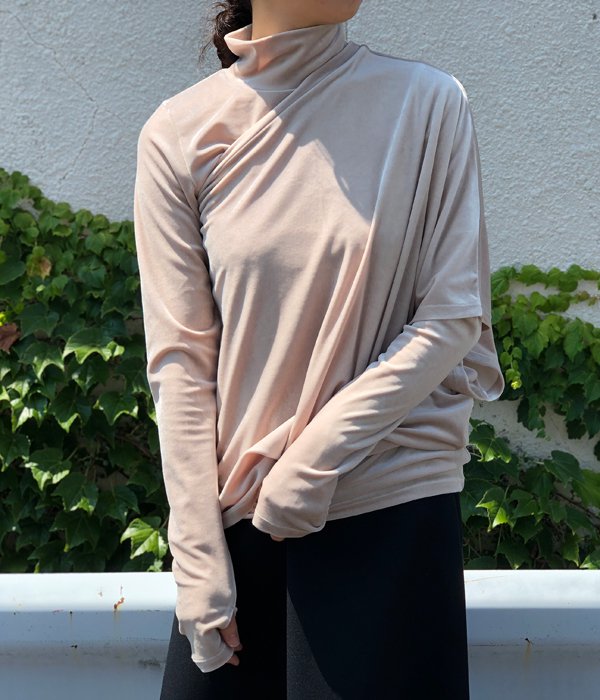 PHEENYからVELOURS ENSEMBLE L/Sが入荷しました。ストレッチ性と上品な光沢感のあるベロア素材を使用しハイネックロングスリーブ+アシンメトリートップスをレイヤードしたITEM。それぞれ単体で着用することも可能です。生地の光沢感とドレープ性のある風合いがコーディネートに奥行をプラスしてくれます。