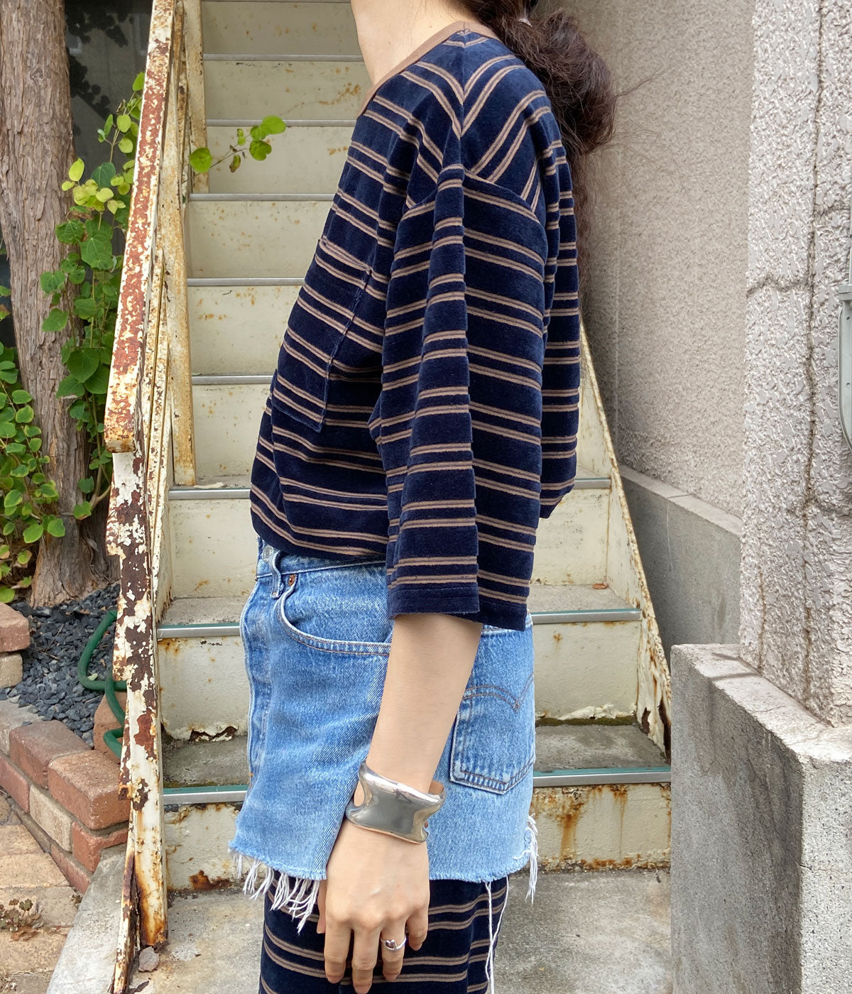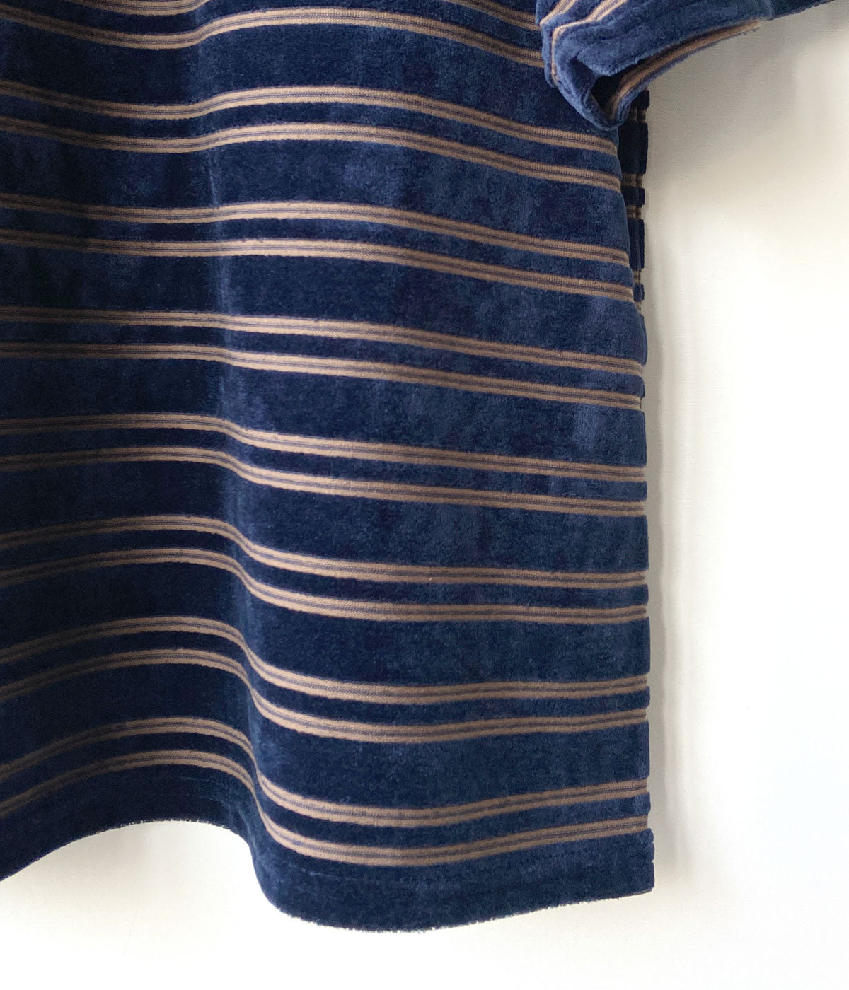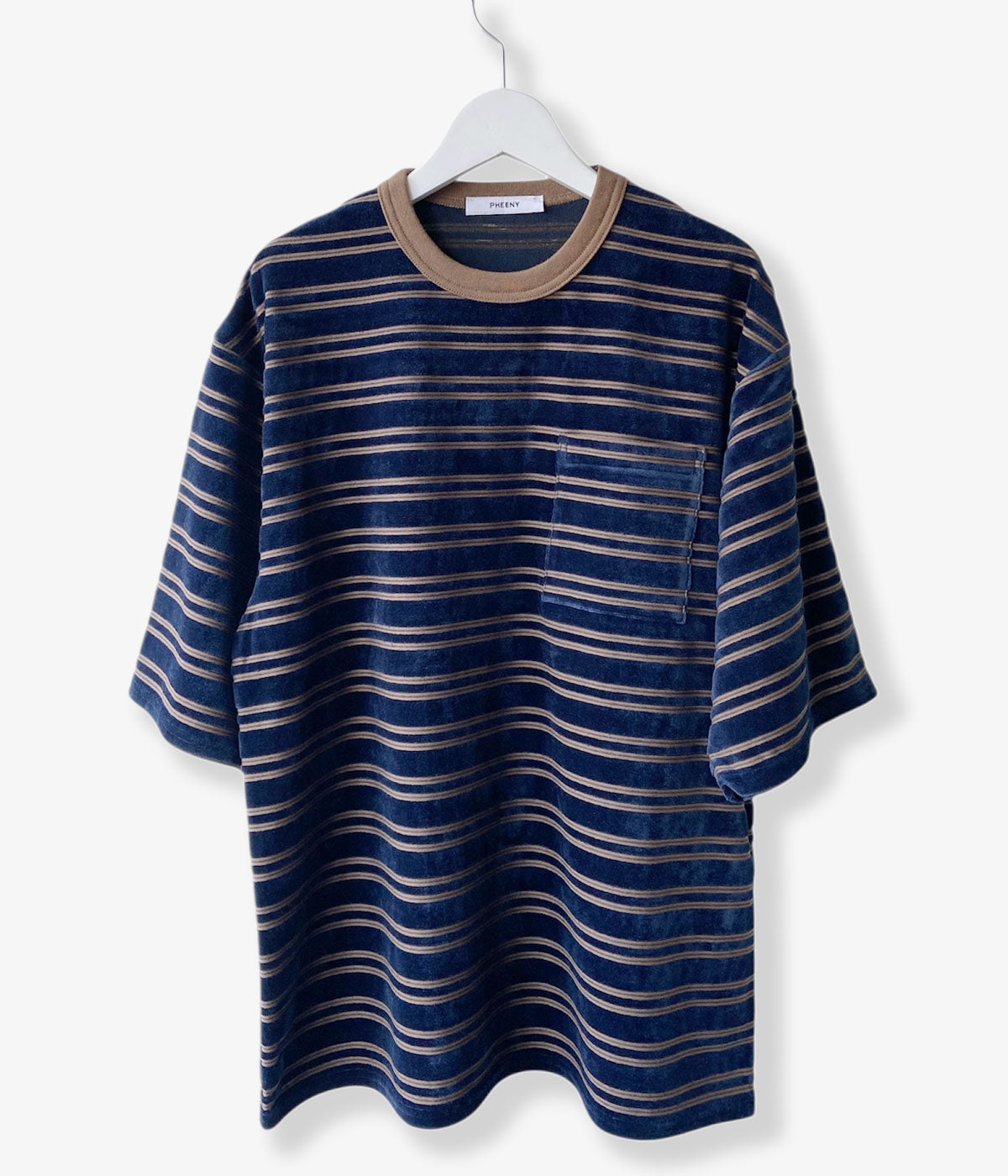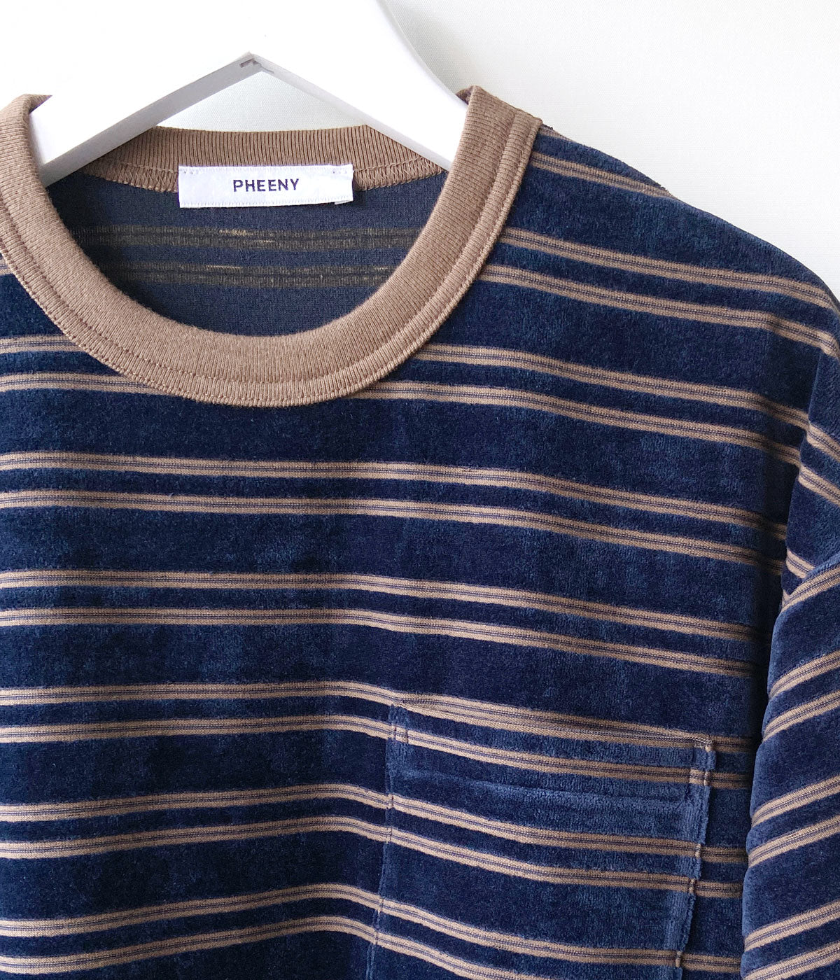 PHEENYからVELVET BORDER S/Sが入荷しました。リラックス感のあるボクシーなシルエットのTシャツ。シンプルなデザインでデイリースタイルにぴったりです。パイル部分にはコットンを使用し膨らみ感があり、裏面はポリエステルを使用して洗濯後の型崩れを防ぎ、速乾性も兼ね備えた一着です。