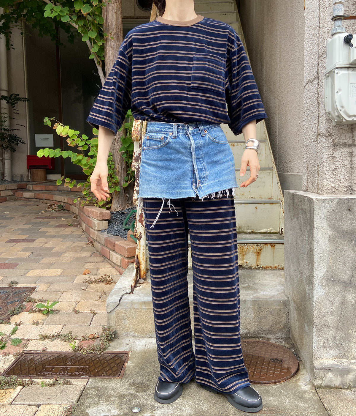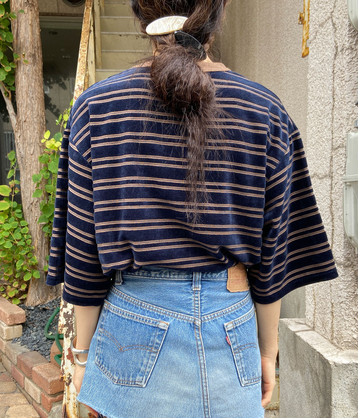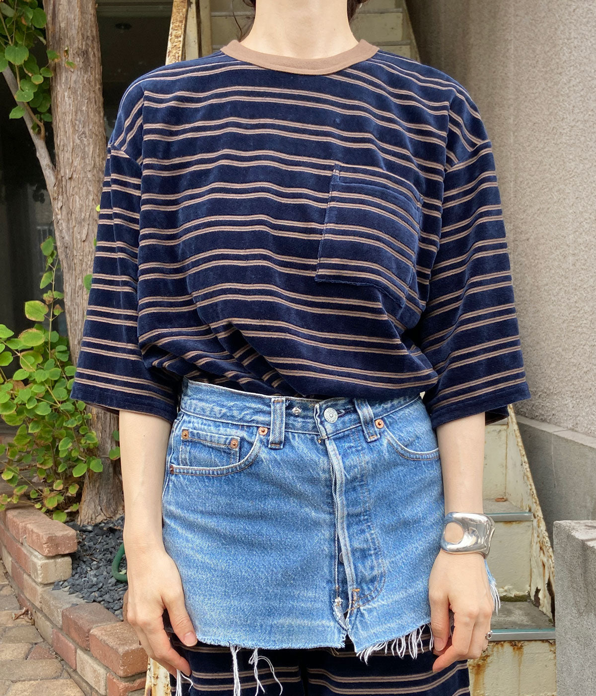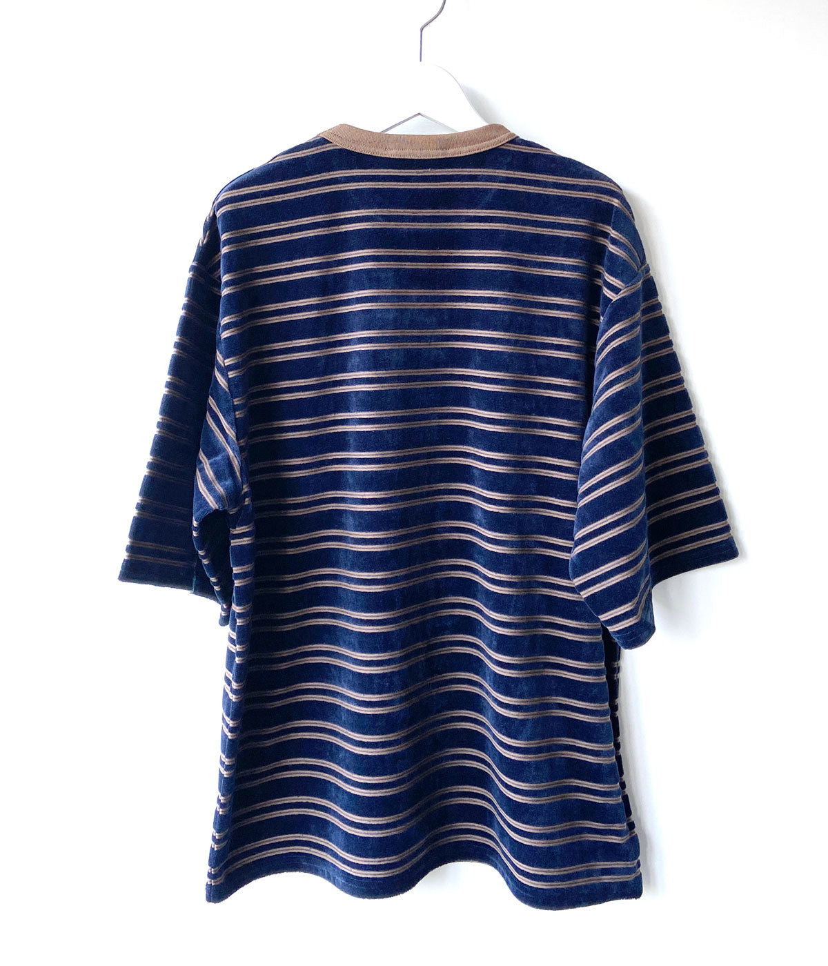 PHEENYからVELVET BORDER S/Sが入荷しました。リラックス感のあるボクシーなシルエットのTシャツ。シンプルなデザインでデイリースタイルにぴったりです。パイル部分にはコットンを使用し膨らみ感があり、裏面はポリエステルを使用して洗濯後の型崩れを防ぎ、速乾性も兼ね備えた一着です。