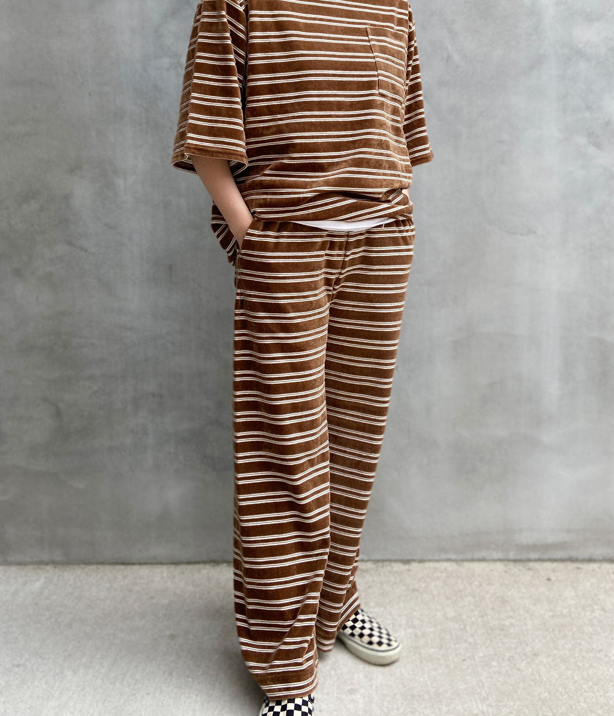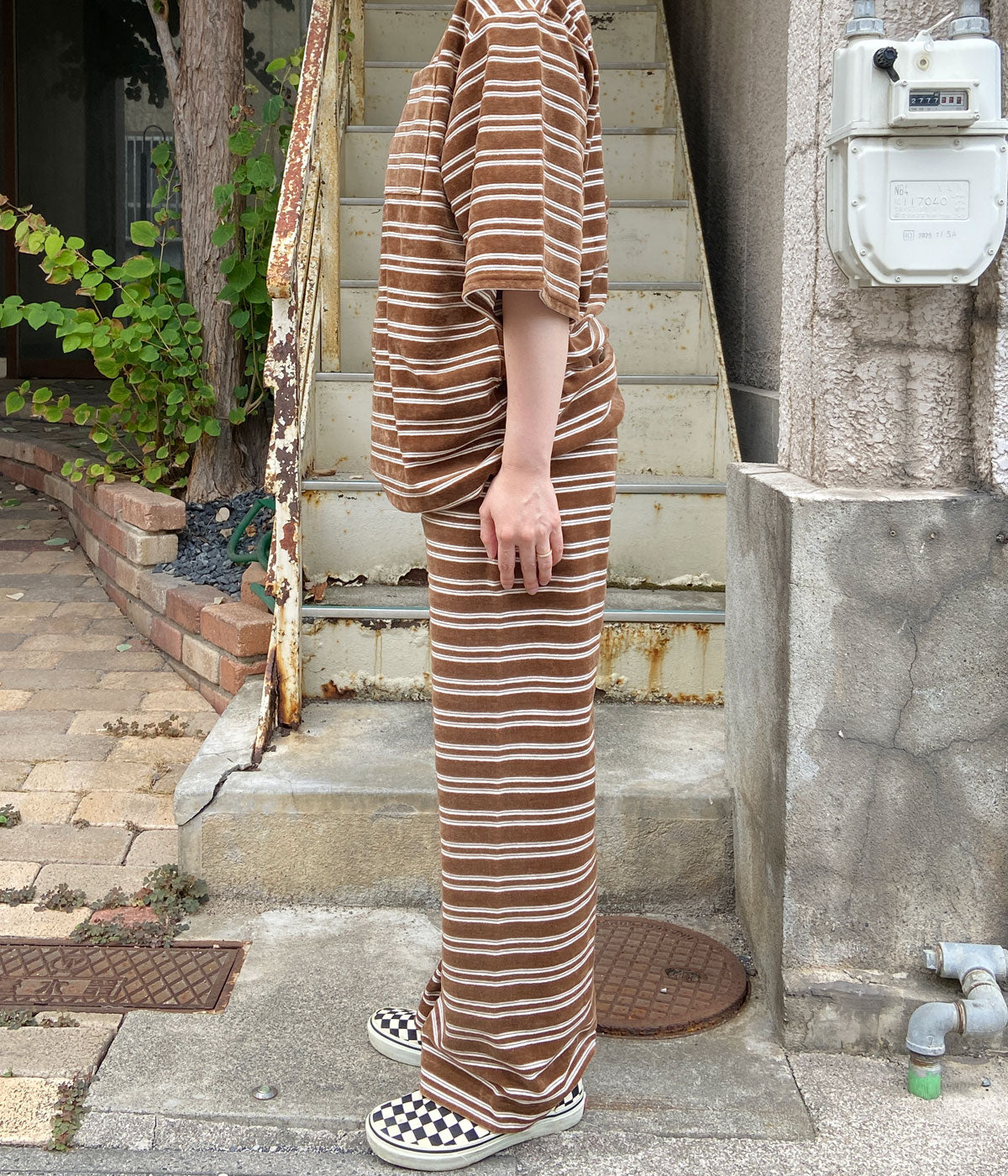 PHEENY/VELVET BORDER WIDE PANTS(BROWN)