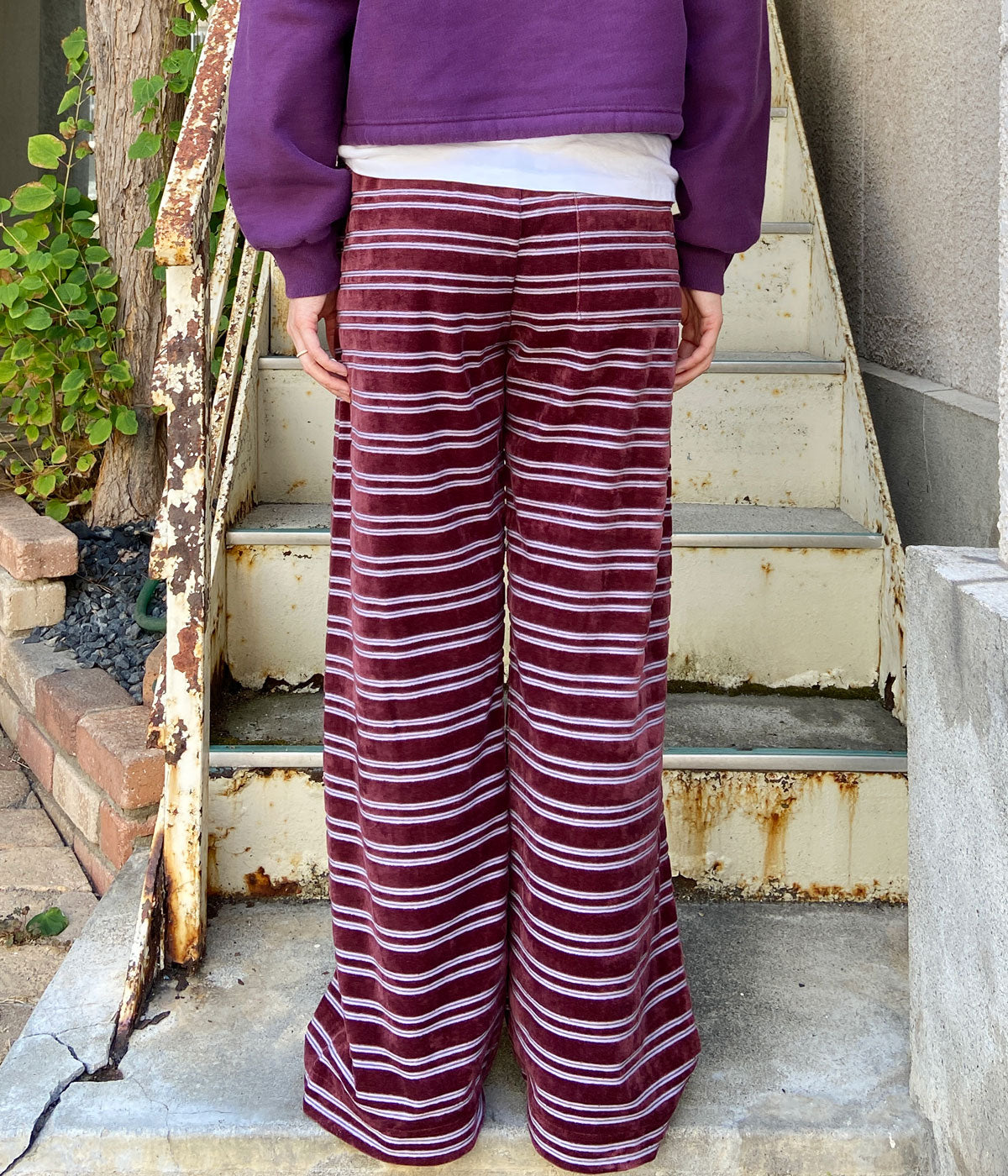 PHEENY/VELVET BORDER WIDE PANTS(BURGUNDY)