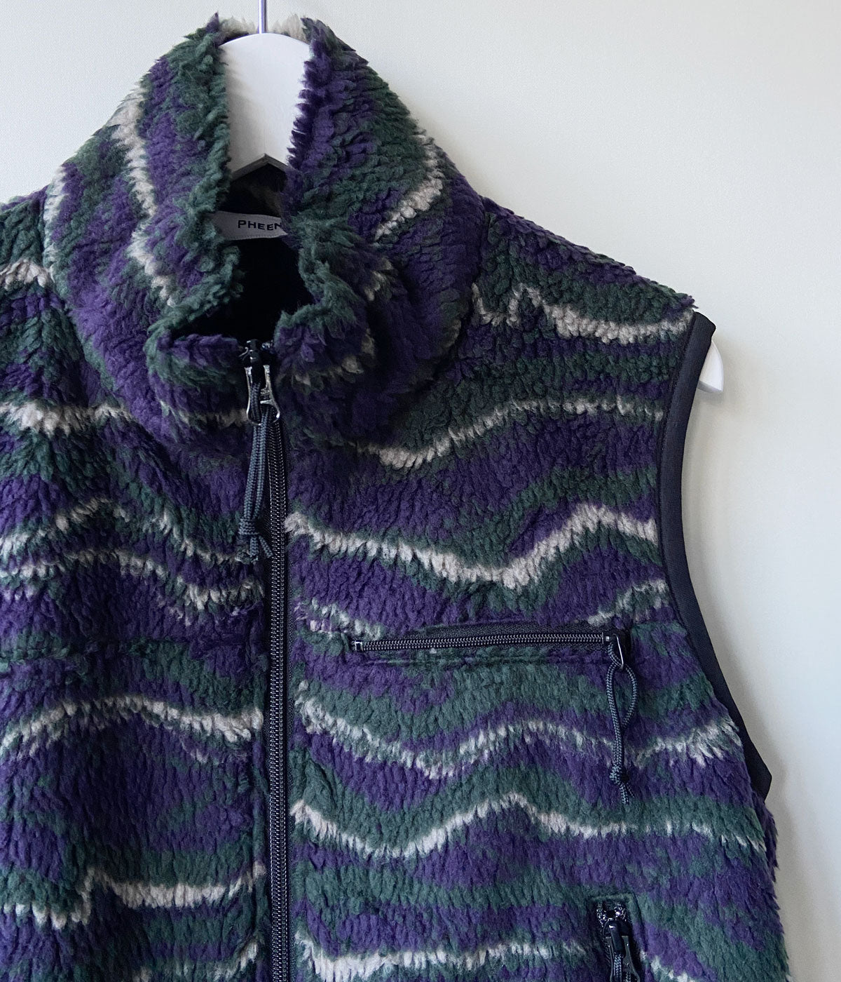 PHEENYからWAVE BOA VESTが入荷しました。オリジナルのウェーブ柄ボアフリース。柔らかなボア素材を使用し、軽くて暖かく、パーカーやニットの上に羽織れるデイリーユースにぴったりな一着です。