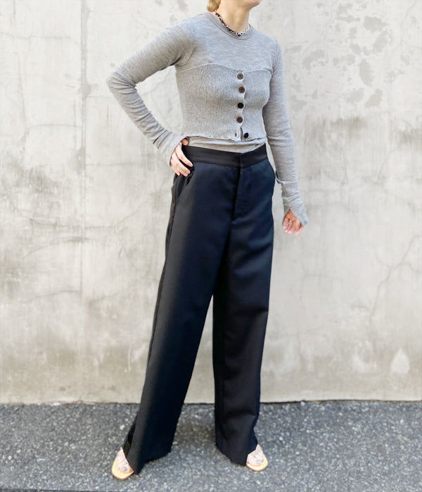 PHEENYからWOOL CIRCULAR RIB CREW NECKが入荷しました。なめらかな肌触りで心地よく、インナーに適した素材で作成。ウールは衣類内の湿気を吸収して発熱する天然の機能性素材。冬のインナー使いに重宝します。長めの袖丈でニットやスウェットの袖口から覗かせて着用。袖口にスリットあり。