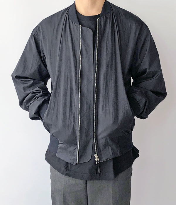 POLYPLOIDから、BOMBER JACKETが入荷しました。ミリタリーテイストのフライトジャケットをベースに、中綿を抜いてスタイリッシュなシルエットに仕立て上げたMA-1ジャケット。上下リブ付き、フラップポケットに、Wジップ仕様のディティール。左袖のシガレットポケットを排すことでよりソリッドな印象に。