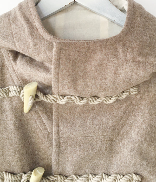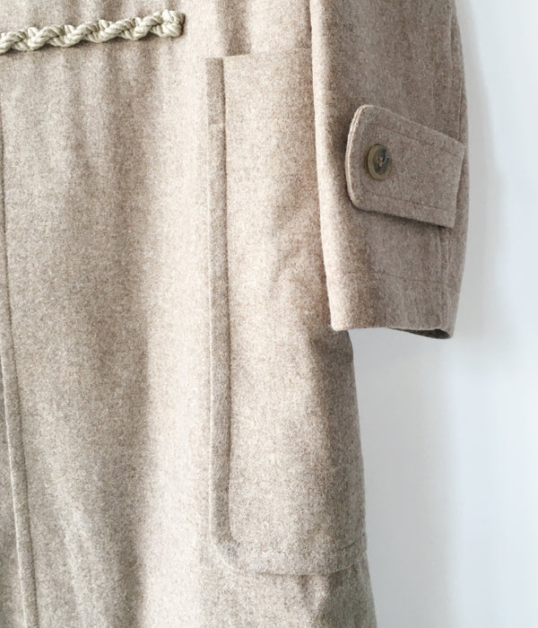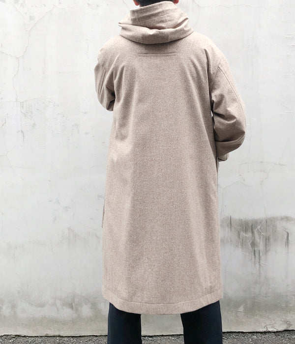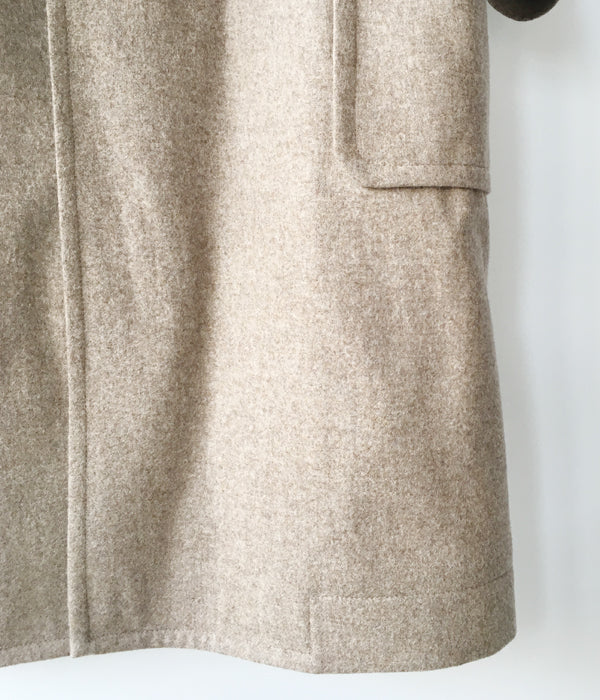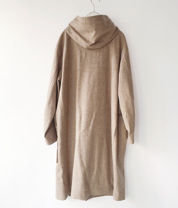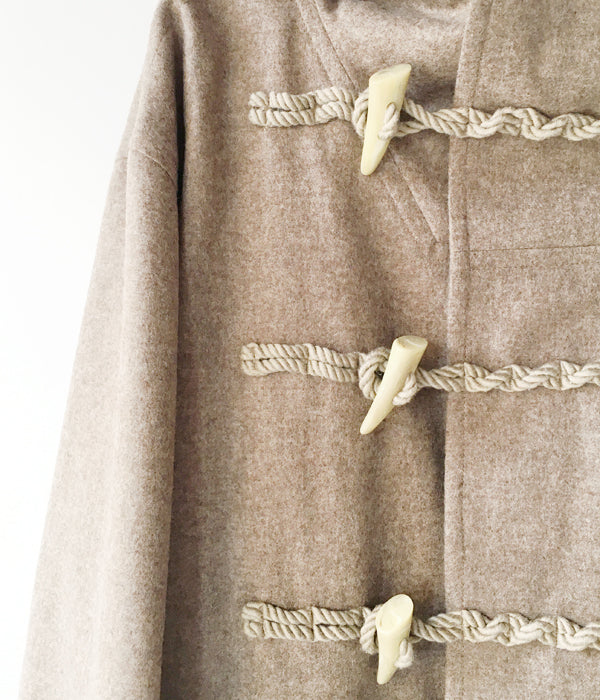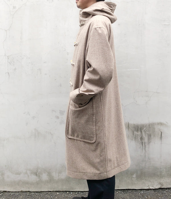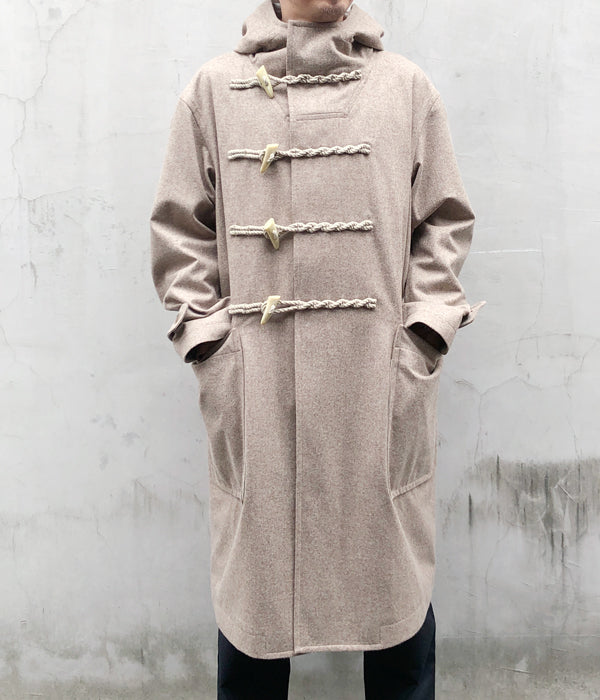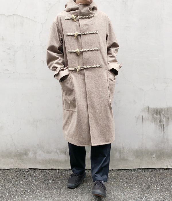 POLYPLOIDから、DUFFLE COAT Cが入荷しました。上質なメルトンウール素材を使用したダッフルコート。トグルボタンや大きなパッチポケット等クラシックなディティールを踏まえつつ、ボリュームのあるサイジングに仕立てられています。アームホールもゆったりとしているのでインナーを選ばず、着心地も実に楽な仕上がりに。