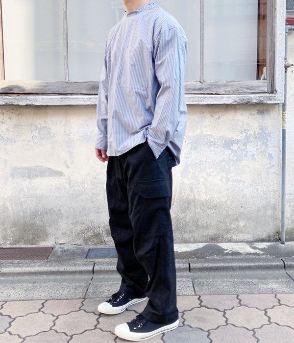 POLYPLOIDから、FIELD SHIRT Bが入荷しました。ハリのあるサテン生地の質感が美しい、首元のボタン式によるP/O仕様のシャツ。前後異なる着丈バランスと深いスリットで動きのあるシルエットが生まれます。大きなバストポケットがアクセントに。