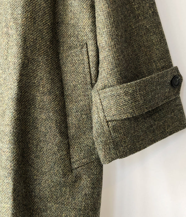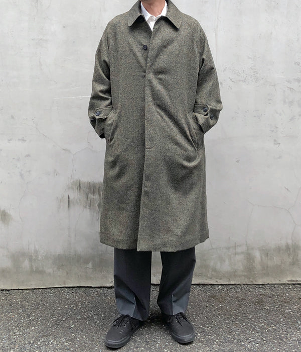 POLYPLOIDから、LONG COAT Bが入荷しました。定番のフライフロント仕立てのステンカラーコート。ウール素材を使用した上品なチェック柄が美しく、温もりのある生地感が特徴。ゆったりとしたAラインシルエットに、アームホールもワイドな設計で、厚手のインナーでも合わせやすく着心地を妨げません。