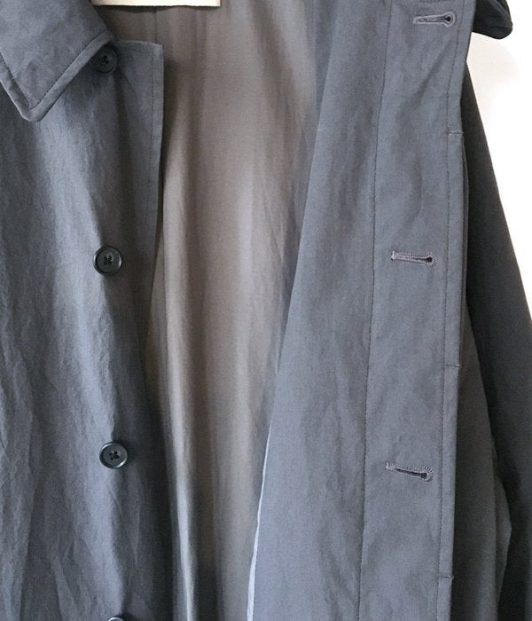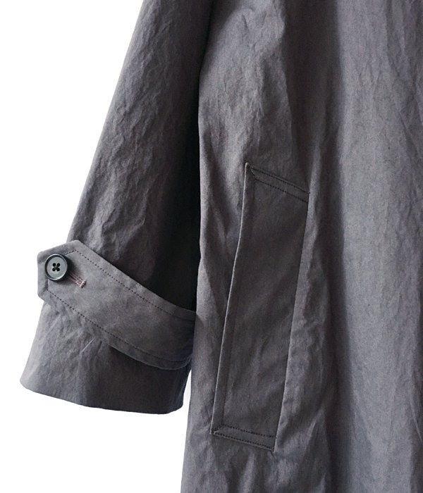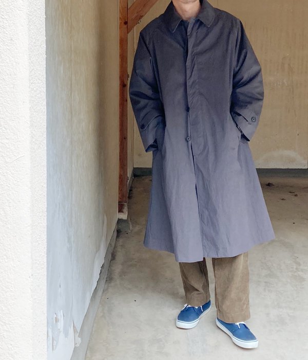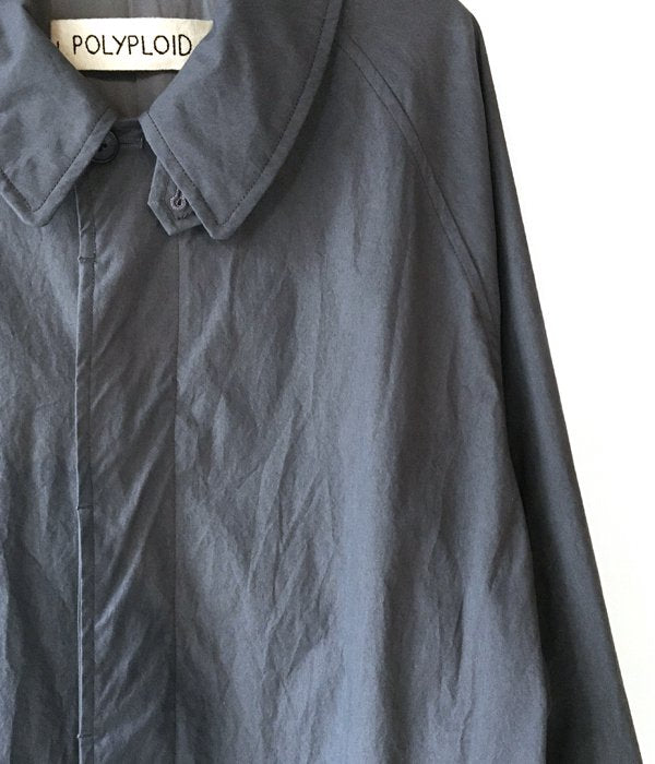 POLYPLOIDから、LONG COAT Cが入荷しました。コットン生地とナイロンのブレンドによる、綿の心地良い質感のなかにも適度なハリを感じさせる素材を使用した、フライフロント仕立てのステンカラーコート。ゆったりとしたAラインシルエットに、アームホールもワイドな設計で厚手のインナーでも合わせやすく着心地を妨げません。滑りの良い裏地付きで袖通りも良好。