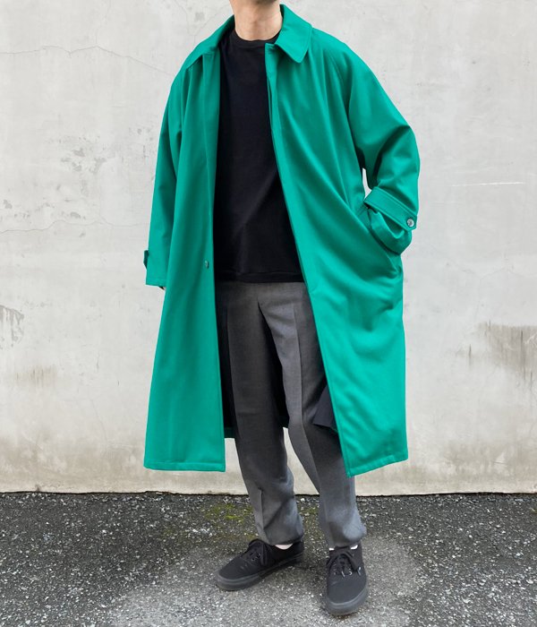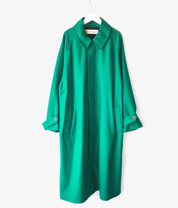 POLYPLOIDから、LONG COAT Cが入荷しました。オーストリアの老舗ファブリックメーカー"BAVARIAN LODEN"による上質なWOOLを使用した、フライフロント仕立てのステンカラーコート。ゆったりとしたAラインシルエットに、アームホールもワイドな設計で厚手のインナーでも合わせやすく着心地を妨げません。