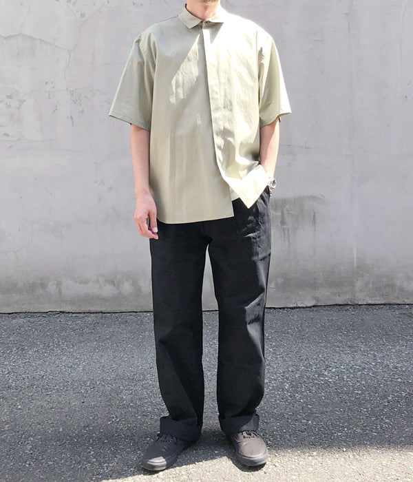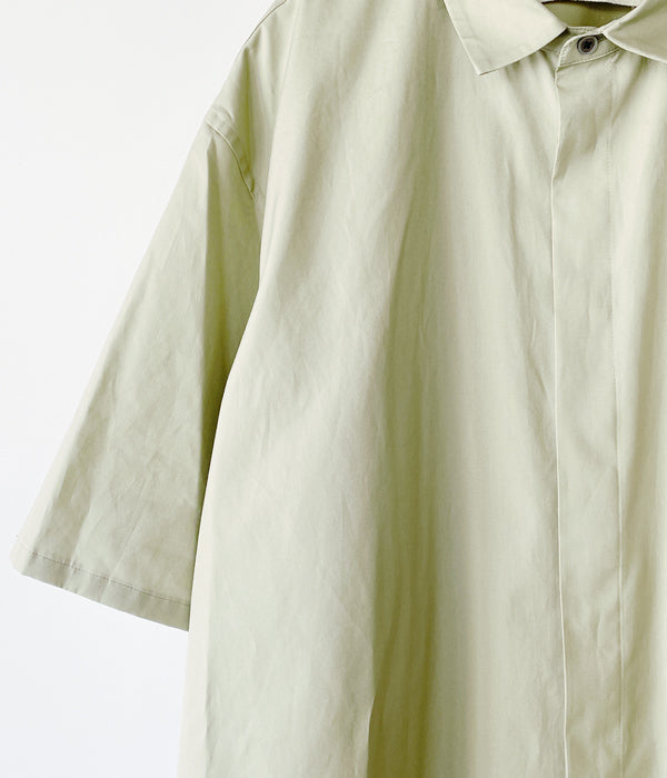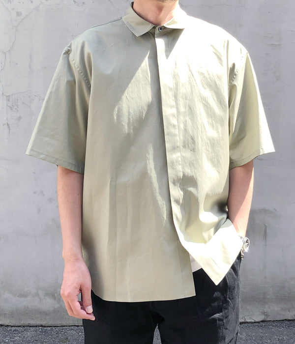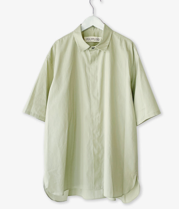 POLYPLOIDから、SHORT SLEEVE SHIRT Cが入荷しました。毛羽を取り除いたクリーンな表情のブロード生地を使用した、大きなサイズ感が特徴のSS SHIRT。比翼仕立てですっきりとしたフロントが上品な印象を与えます。背面のインタック、ラウンドした裾のカッティングに、深めのスリットがシルエットに動きを与えます。