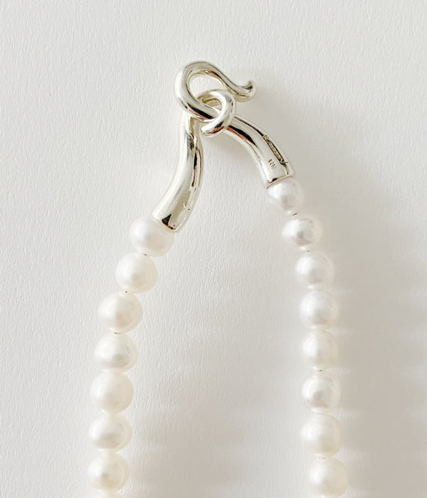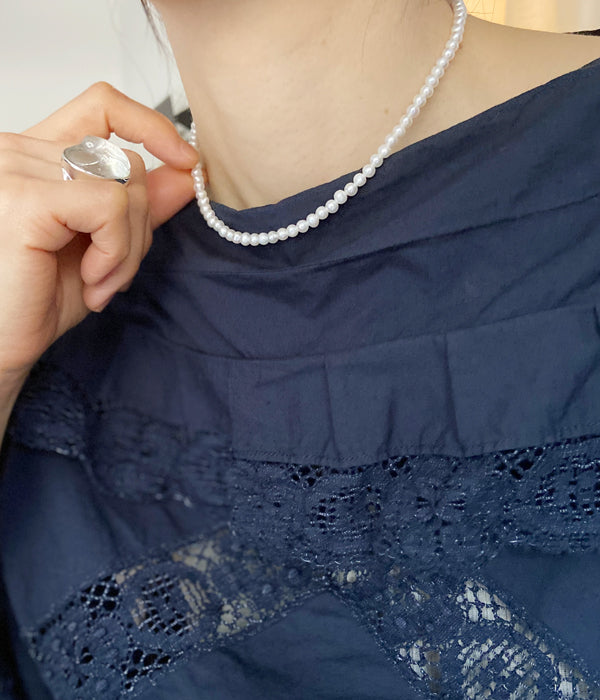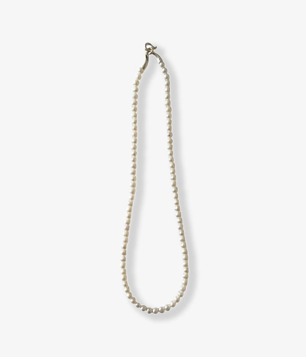 R.ALAGANからBABY PEARL COLLARが入荷しました。4.45mmの小さいパールを使用したネックレス。繊細に首元を彩ります。現代的な佇まいで、装いを選ばず活躍する一本です。