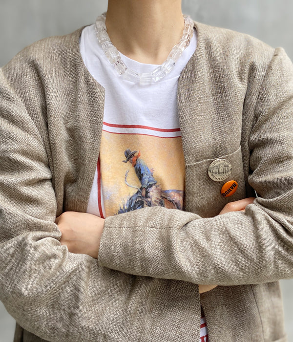 R.ALAGANからCRYSTAL WATER NECKLACEが入荷しました。敢えてラフカットのクリスタルで自然のダイナミックな美しさを表現。透明度の高いものと低いものを織り交ぜることでヴィンテージ感を演出しています。マンテルセットは花鋏のモチーフからのインスパイア。