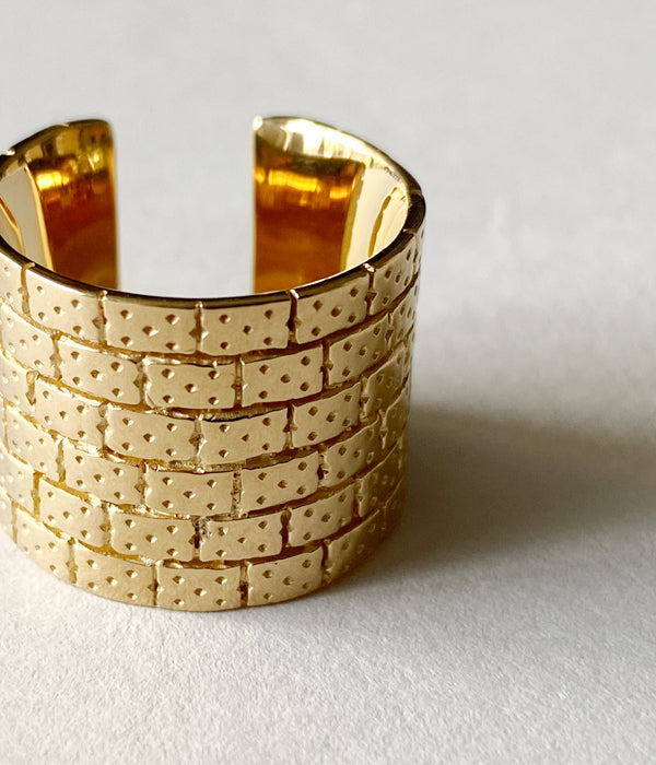 R.ALAGANからDOT TILE RING(GOLD)が入荷しました。Eileen Grayのパネルスクリーンをイメージしたリング。テクスチャーを入れることで表情を生み出し、柔軟な女性像を表現しています。幅広の為、通常よりサイズUPがおすすめ。