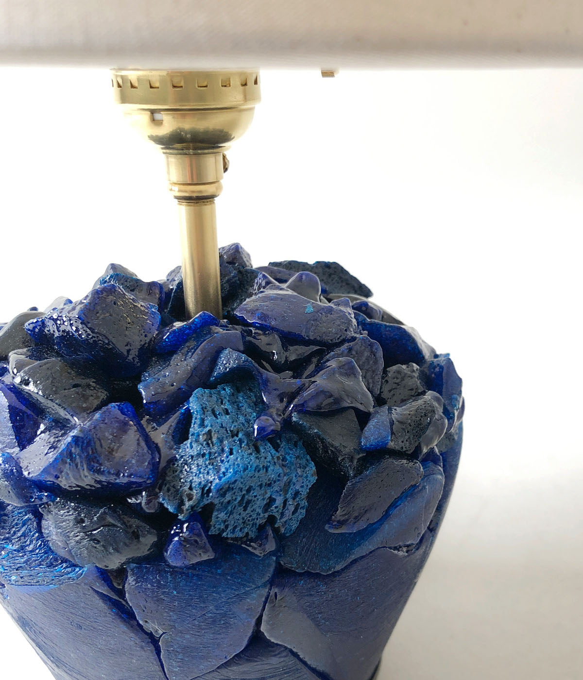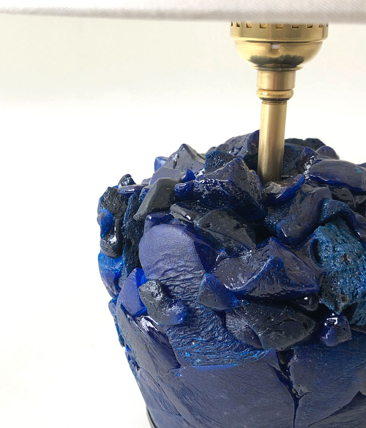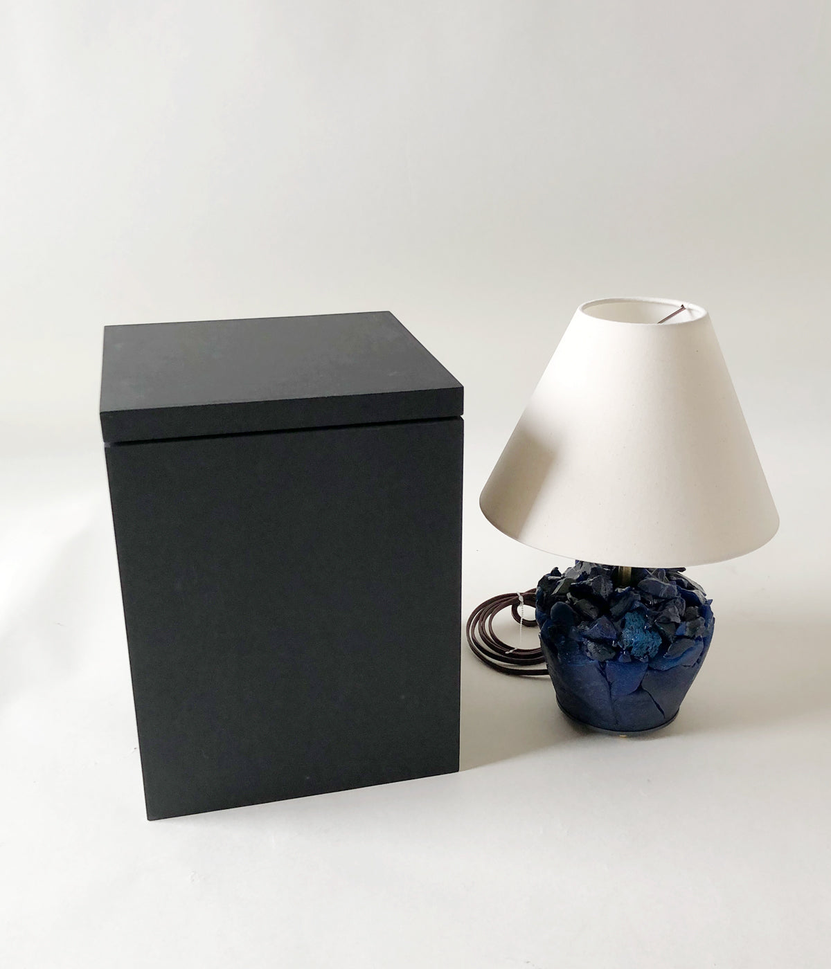 R.ALAGANからENGRAVED BLUE LAMPが入荷しました。ガラス造形作家の神代良明さんとのコラボレート商品。⽇々の暮らしに寄り添うというコンセプトのもと、アートピースと実⽤品の交差点を模索。ガラスで繊細に表現された⾊、質感、形状はまるで地層のような積層体の重厚さと表⾯の艶やかさが美しいものに仕上がっています。ランプシェードは、⽇本製のコットン素材を使用し、アイボリーカラーが、ディープブルーガラスと美しいコントラストを⽣み出しています。