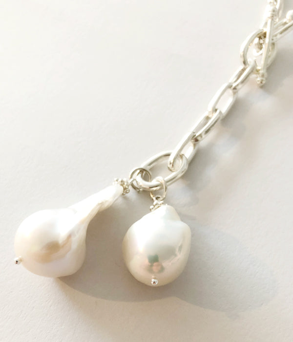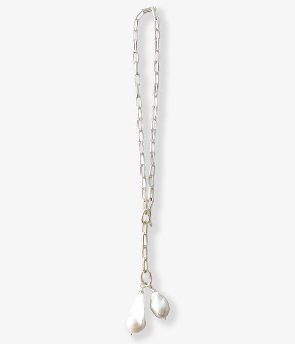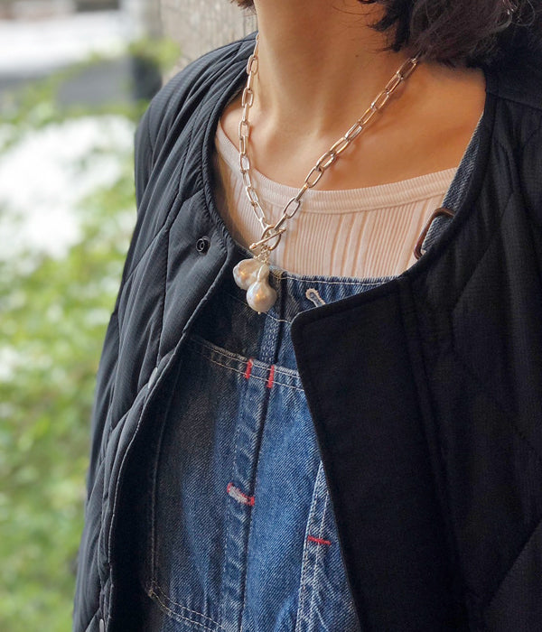 R.ALAGANからEVA NECKLACEが入荷しました。オリジナルのチェーンに天然のパールが付いたデザインのネックレス。留め具の位置を変えることで2WAYのスタイリングが可能。チェーンのハードな印象を品のあるパールとララガンオリジナルのチェーンで見事に中和している美しい一品です。