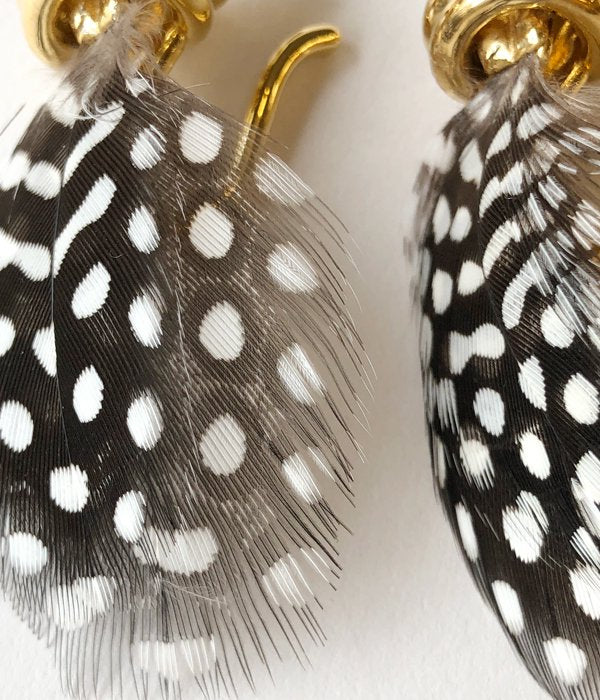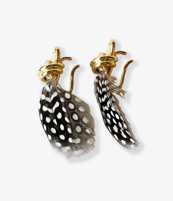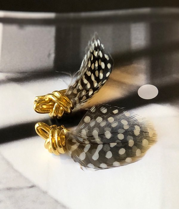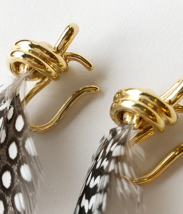 R.ALAGANからFEATHER KNOT EAR CUFFが入荷しました。ノットから着想のイヤーカフ。一本の地金を難しい工程を経てオリジナルの結び方と理想のフォルムが完成。ドット模様が特徴的なホロホロ鳥の羽とノットのGOLDがモダンでシックな印象に。