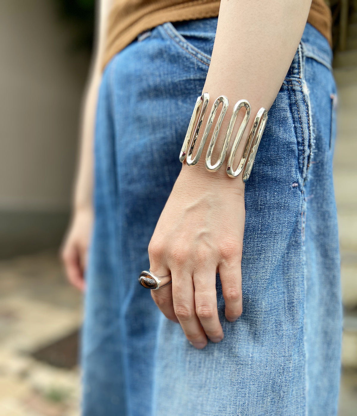 R.ALAGANからFICKLE BANGLEが入荷しました。雫型の線を丁寧に引いて作られたバングル。地金の柔らかさを生かし、肌に馴染むデザインに。高級感があり、手元に深みを出します。