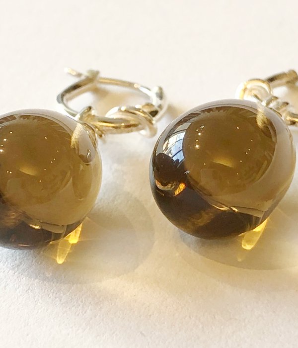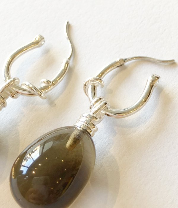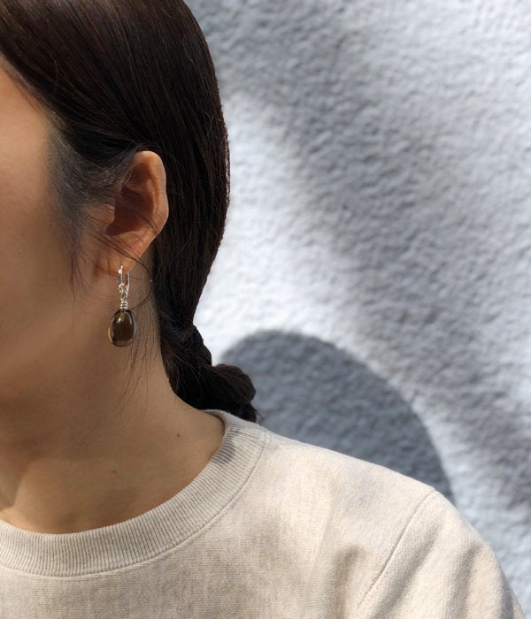 R.ALAGAN/KNOT SMOKY QUARTZ EARRINGS(SILVER)