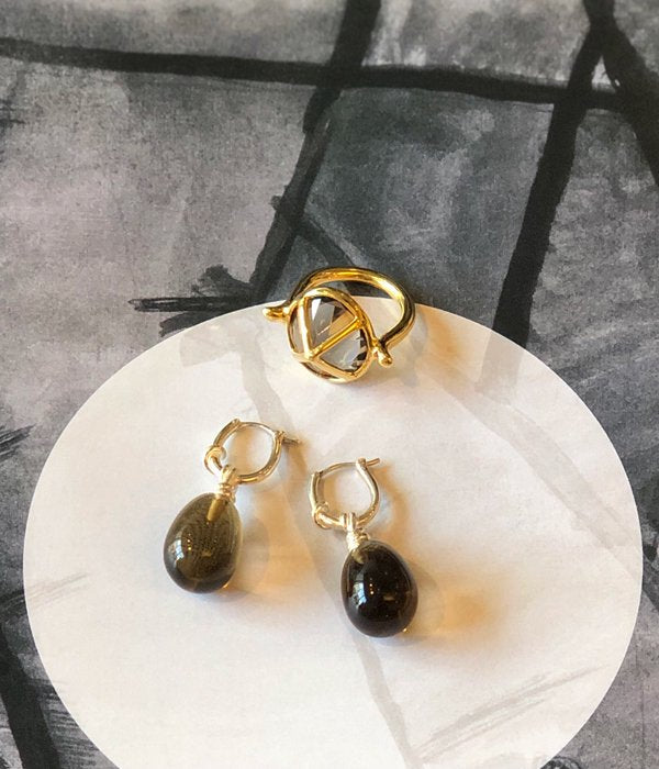 R.ALAGANからKNOT SMOKY QUARTZ EARRINGSが入荷しました。大地と身体とのエネルギーを繋げる力を持ち心身を安定させる石に、巻き付くようなノットのデザイン。肌馴染の良いスモーキークォーツの色合いが美しいピアス。