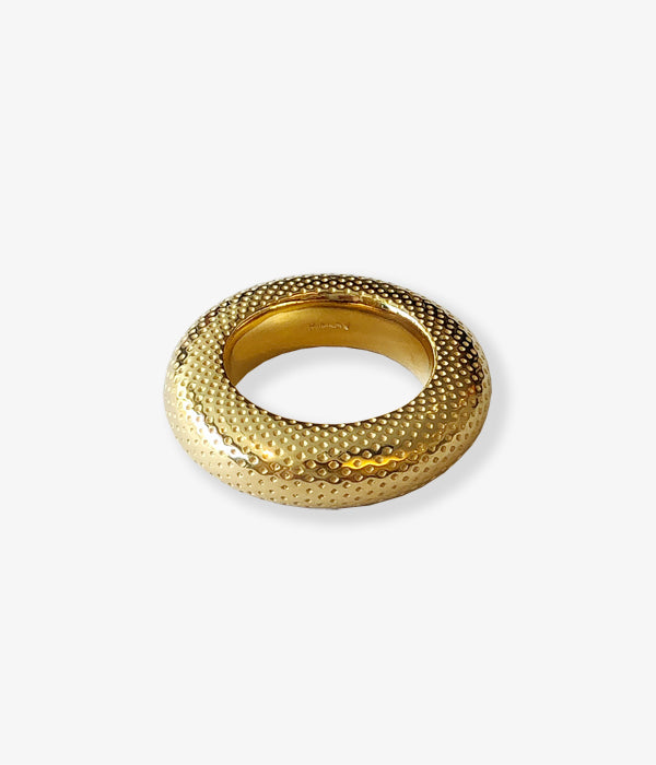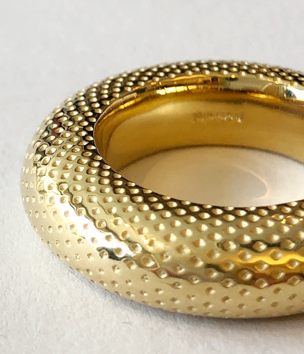 R.ALAGANからKOMON RINGが入荷しました。日本の伝統柄"小紋"を施したオールラウンドリング。ボリューム感のある見た目ながら重くなく、指に当たる部分は鏡面仕様で滑らか。圧倒的な存在感でリングは潔く一つだけ、というのもおすすめです。