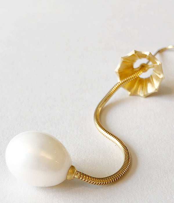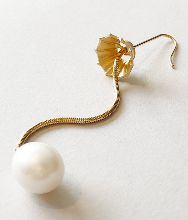R.ALAGANからLAMP EARRINGが入荷しました。ランプの骨組みまでをリアルに表現したシングルピアス。スネークチェーンの先にはランプの電球をイメージした艶のあるエッグ型の淡水パールを使用。長めのチェーンが優雅に動き、シックな雰囲気に。