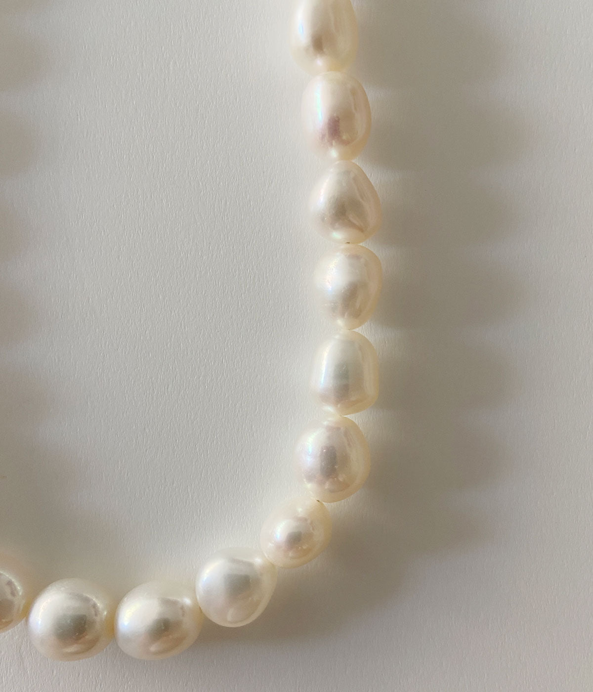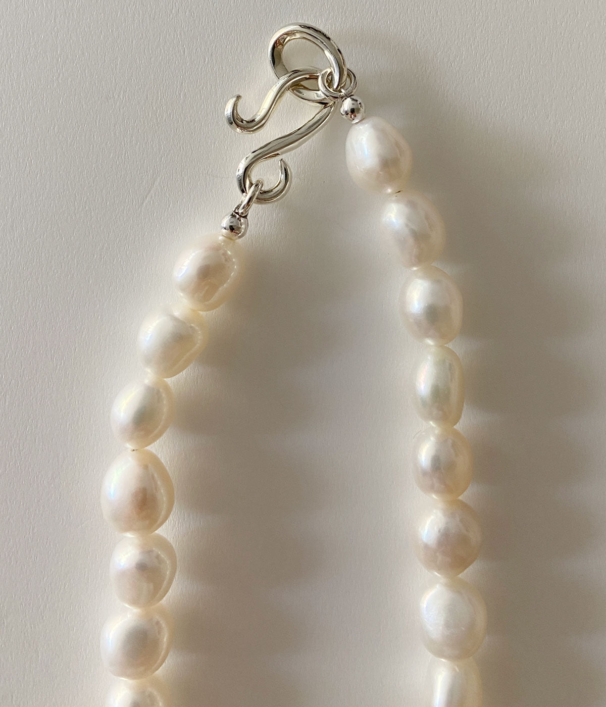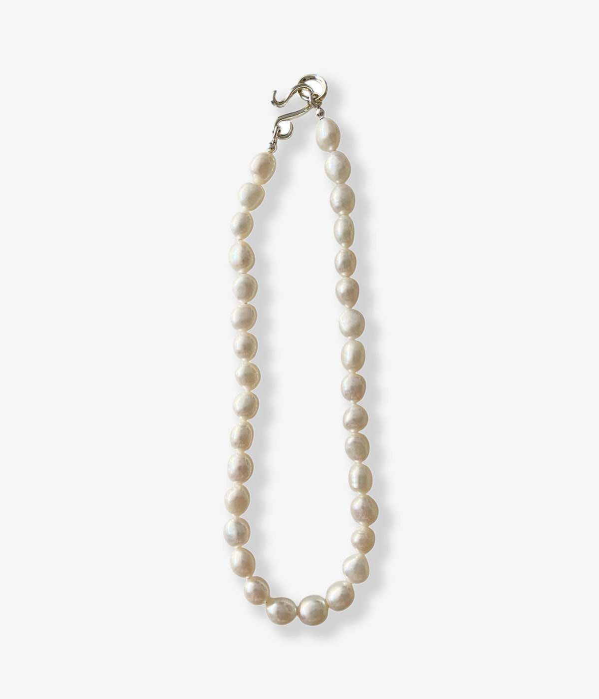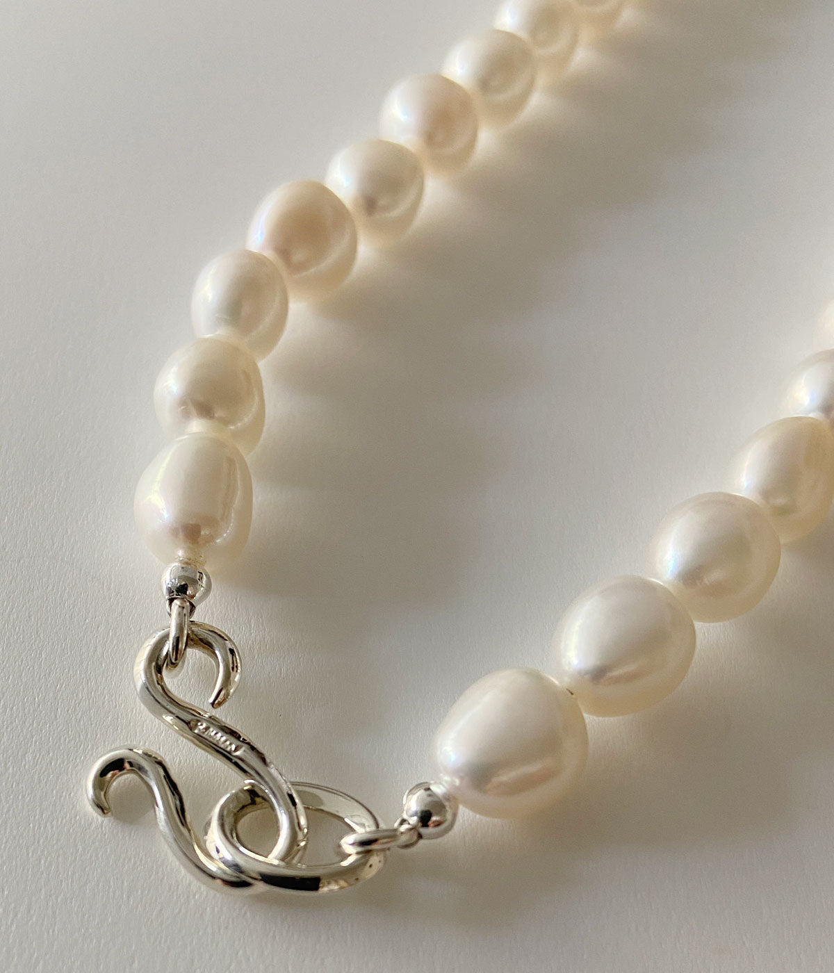 R.ALAGANからEDIUM PEARL NECKLACEが入荷しました。オリジナルデザインの留め具が美しいパールネックレス。淡水バロックパールのみを使用しています。CLASSIC PEARL NECKLACEより2㎝短い長さ。