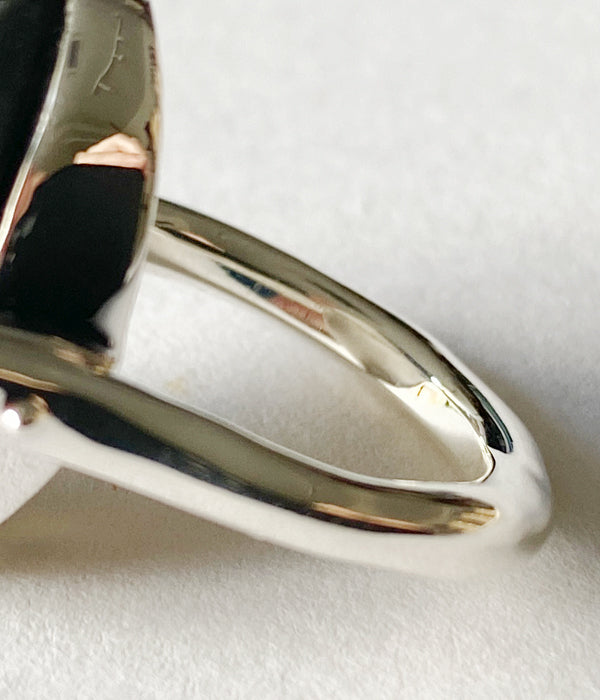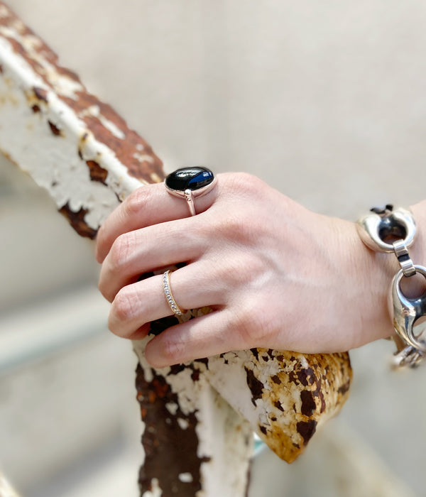 R.ALAGANからNEW ONYX RING(SILVER)が入荷しました。美しい伏せこみの技術と大ぶりなオニキスのリングは唯一無二な存在感。腕の表面に凹凸をつけニュアンスをつけています。発売以来、人気のリング。