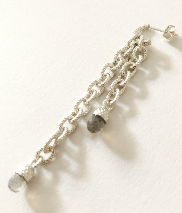 R.ALAGAN/STONE KOMON CHAIN EARRINGS(SILVER)