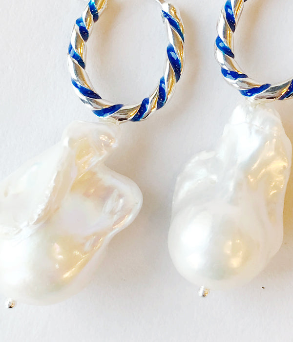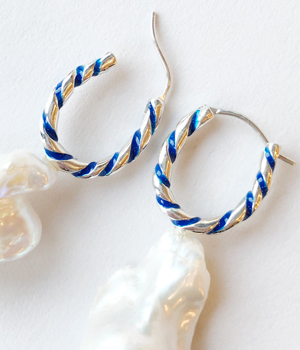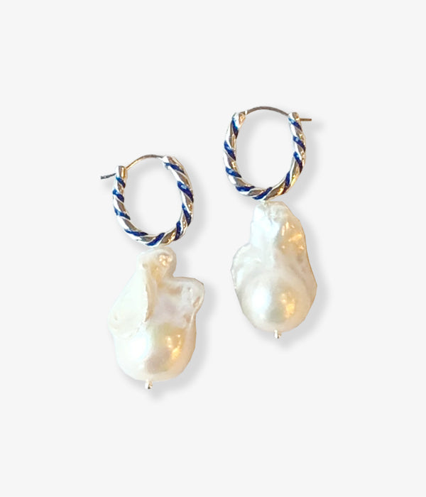 R.ALAGANからSTRIPE PEARL EARRINGSが入荷しました。ピカソの陶器からインスピレーションのイヤリング。ひねりを加えたシルバーにフランスの伝統色のひとつであるブルーのエナメルが施され、ピカソが愛用したバスクボーダーシャツを彷彿とさせるデザイン。歪なバロックパールが華やかさをプラスし存在感のある耳元に。
