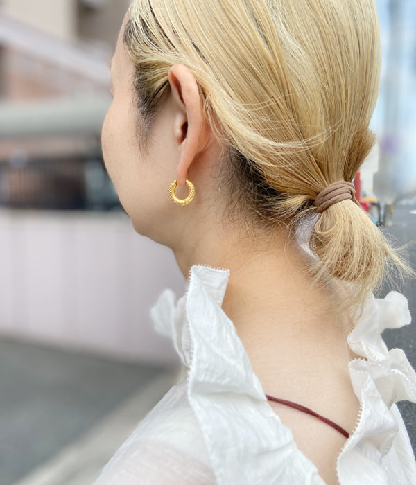 R.ALAGANからTINY DOT HOOPS(GOLD)が入荷しました。貫通しているように見えるピアス。小さいピアスながらもドット柄で主張。毎日身に着けていたいピアスです。
