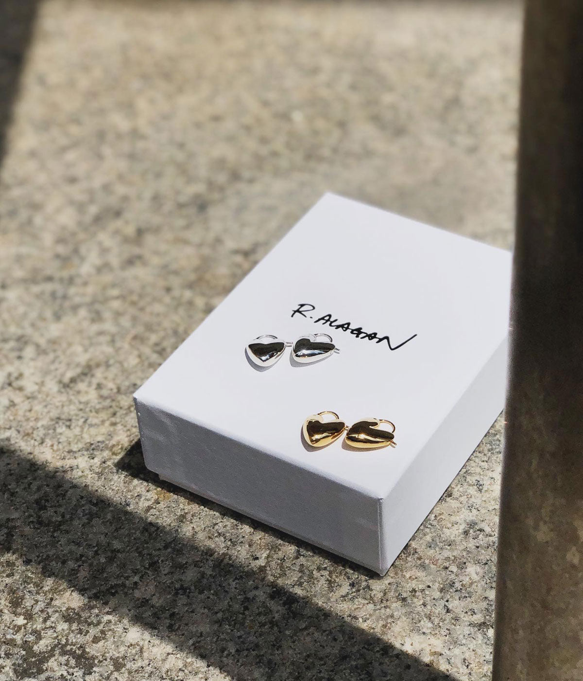 R.ALAGAN/TINY PUFFY HEART HOOPS(GOLD)