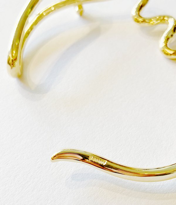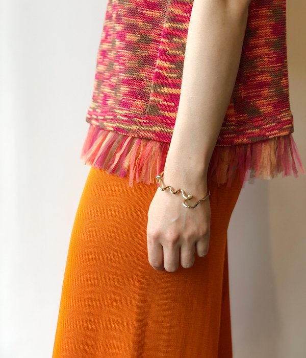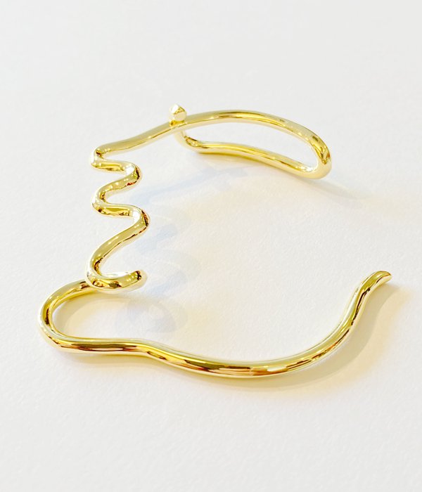 R.ALAGANからVINE FICKLE BANGLE(GOLD)が入荷しました。心の赴くまま伸び絡まった「蔦」をイメージしたバングル。腕に対して垂直にデザインされたユニークな形がポイント。スリーブにレイヤードしたり、FICKLEシリーズのリングと合わせて着けるのもおすすめです。