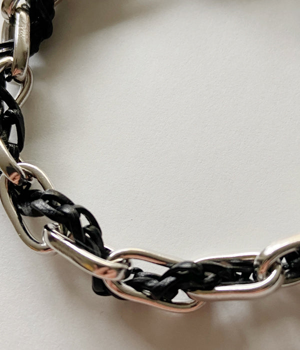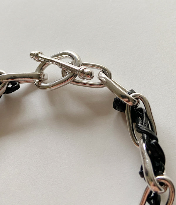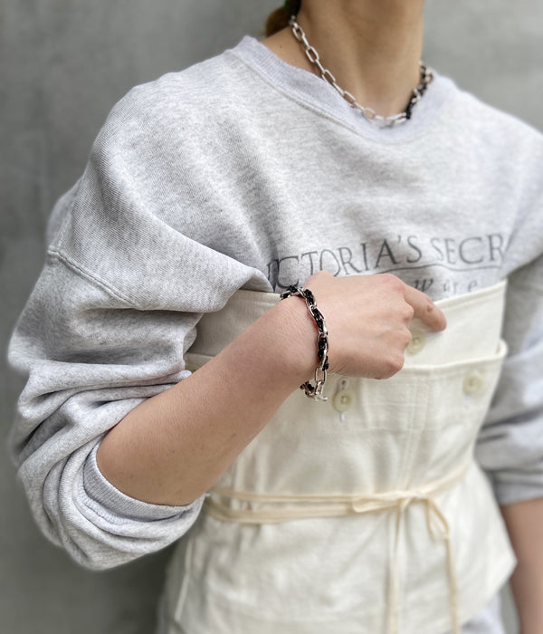 R.ALAGANからSWOVEN CHAIN BRACELET(SILVER)が入荷しました。CLASSIC CHAIN にレザーコードをオリジナルの編み方で編みこんだブレスレット。少しのエッセンスで新しさを。ロジウムメッキをかけているので硫化を防ぎます。