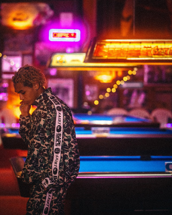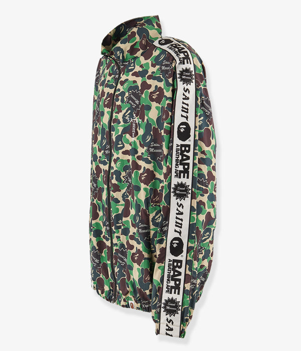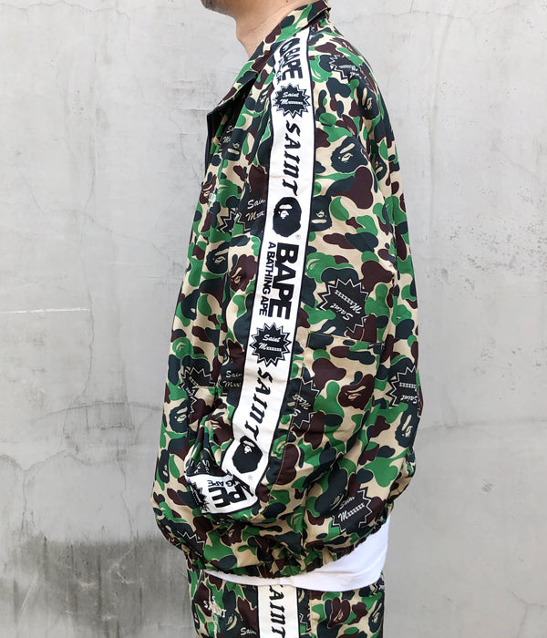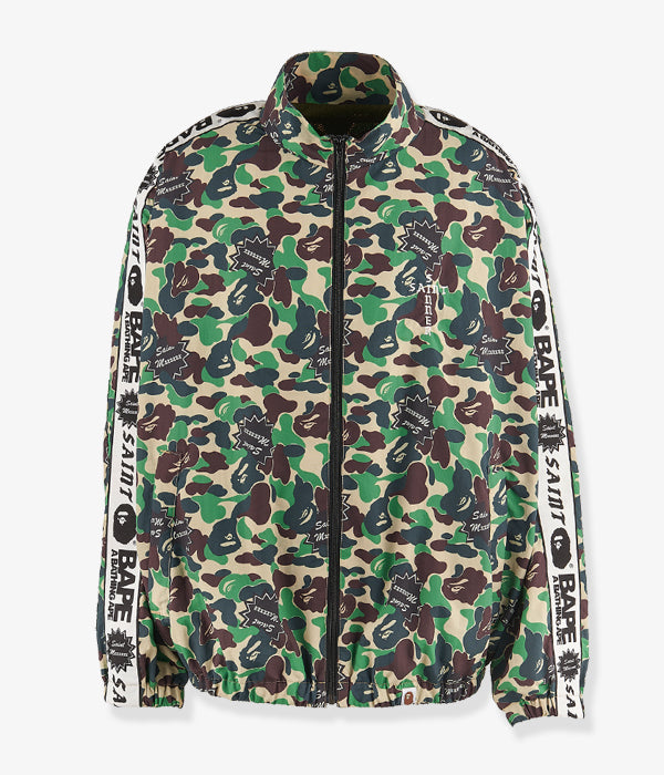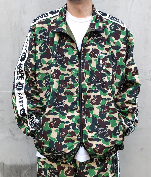 SAINT MICHAELから、AP_TRACK JKT/ST APE/CAMOが入荷しました。A BATHING APE®の30周年を祝したコラボレーションコレクションより、アイコニックなABC CAMO柄にSAINT Mxxxxxxロゴを潜ませたデザインのトラックジャケット。袖にデザインしたそれぞれのネーム入りのラインテープがポイント。裏地にメッシュを配し、フロントファスナーはWジップ仕様。