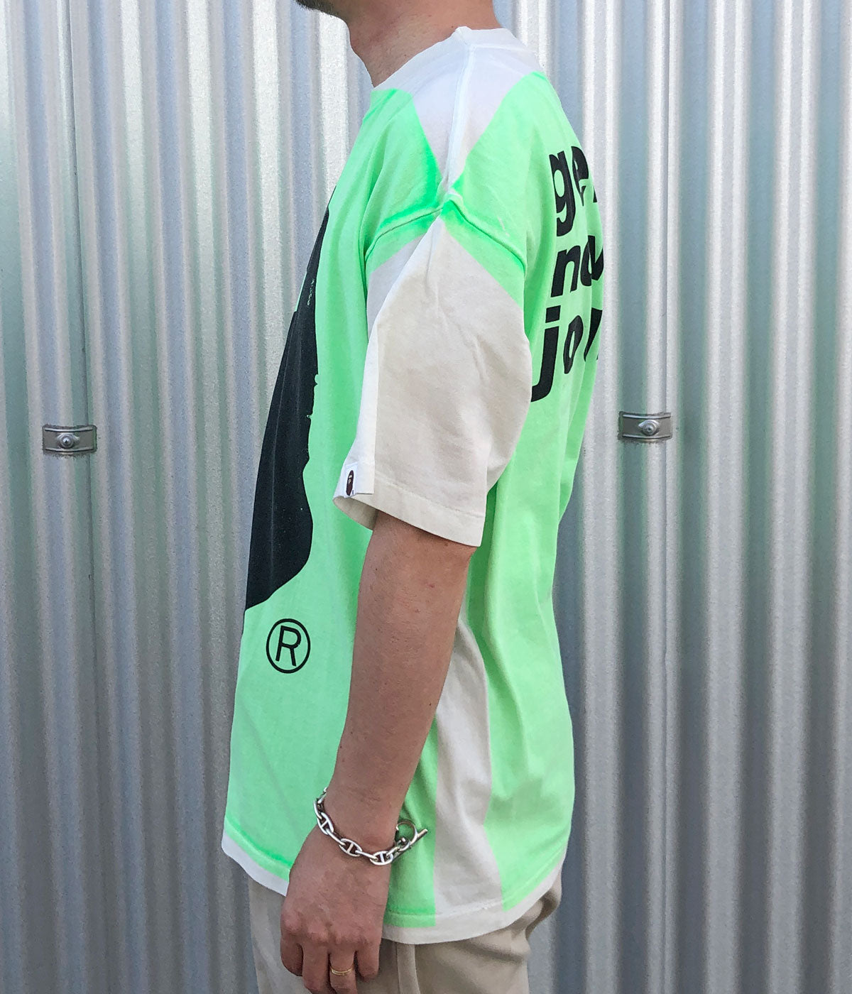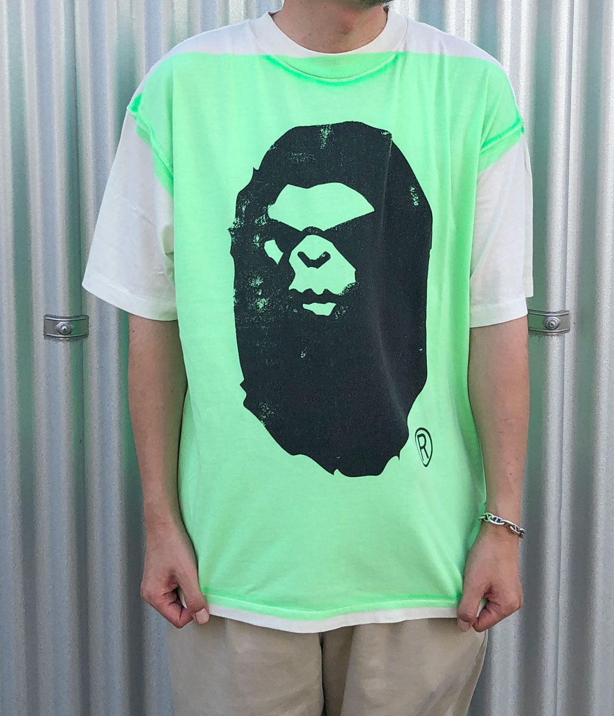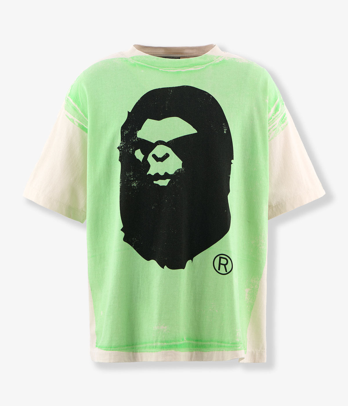 SAINT MICHAEL/BAPE_SS TEE/HANDPRINT/WHT+GRN