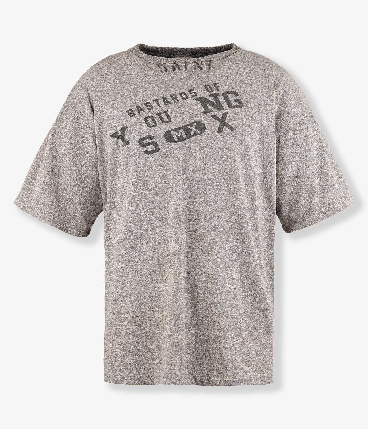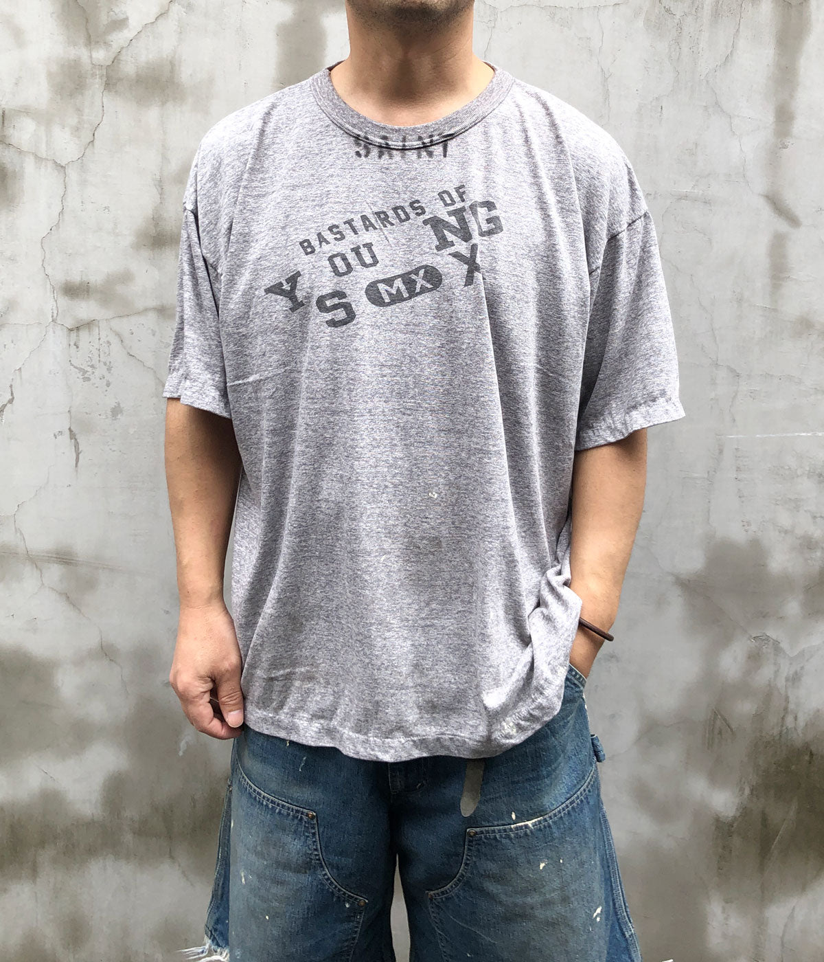 SAINT MICHAELから、BJ_SS TEE/YOUNG/GRAYが入荷しました。©SAINT MxxxxxxとBerBerJinとのコラボレーションアイテムが発売。約3年の歳月を経て完成した’50年代の霜降りグレーを踏襲したTシャツと、BerBerJinディレクター藤原裕氏がこれまで見てきたデニムジャケットの中でもトップクラスの色落ちを誇るモデルをサンプリングし、オールハンドによる加工が施されたデニムジャケットが登場。