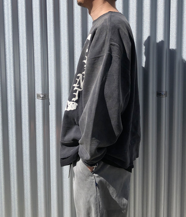 SAINT MICHAELから、CREW SWT/BONE SAINT/BLACKが入荷しました。ハンドスカルとブランドロゴをプリントしたインパクトのあるスウェット。褪色したブラックボディによるヴィンテージ感と、フェード感のあるプリントの質感がポイント。