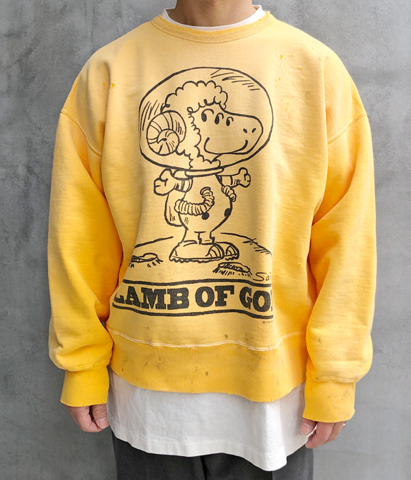 SAINT MICHAELから、CRW SWEAT/LMB OF GD/YELLが入荷しました。フロントのアイコニックなデザインがポイントのクルーネックスウェット。バックプリントも施し、ダメージ&フェード感のある裏パイル仕様のボディに、ヴィンテージ感のあるプリントの質感がポイント。