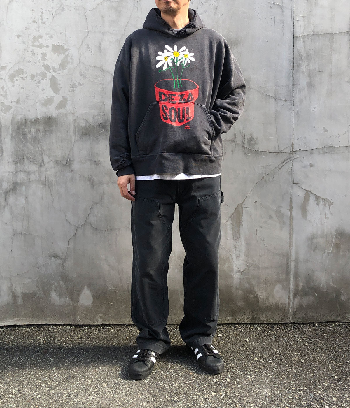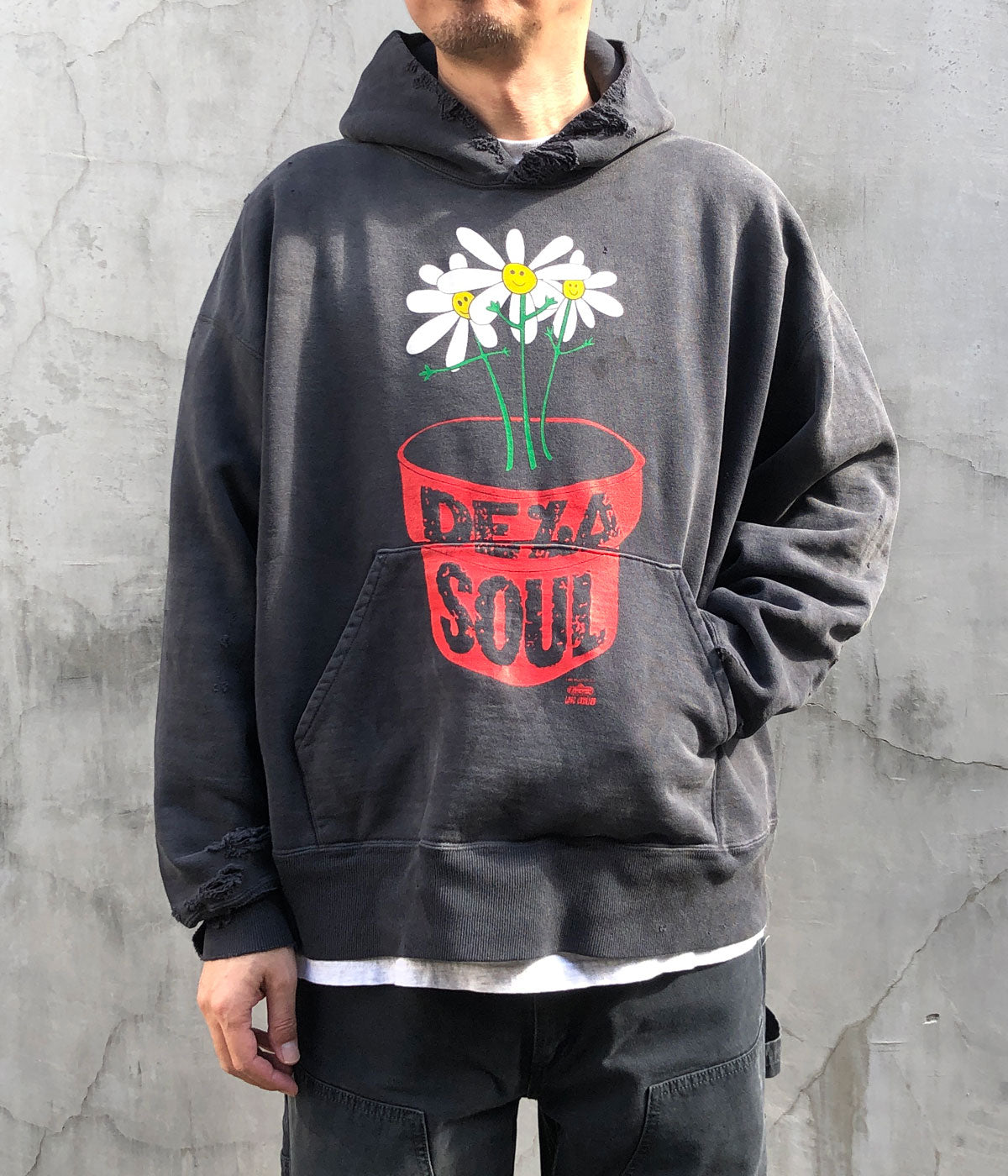 SAINT MICHAELから、DLS_HOODIE/DE LA SOUL/BLACKが入荷しました。©SAINT Mxxxxxxと伝説的ヒップホップグループDE LA SOULとの第二弾コラボレーションアイテムを10月11日(土)に発売いたします。1991年リリースの名盤『De La Soul is Dead』のアートワークにインスパイアされ、鉢植えと花を大胆にプリントしたアイコニックなアイテムが登場。ビジュアルには、©SAINT Mxxxxxxと親交が深く、圧倒的な支持を誇るヘアメイクアップアーティスト・髙木琢也氏を起用。撮影は、彼が代表を務めるヘアサロン「OCEAN TOKYO」にて、フォトグラファー・RK氏によって撮り下ろされました。