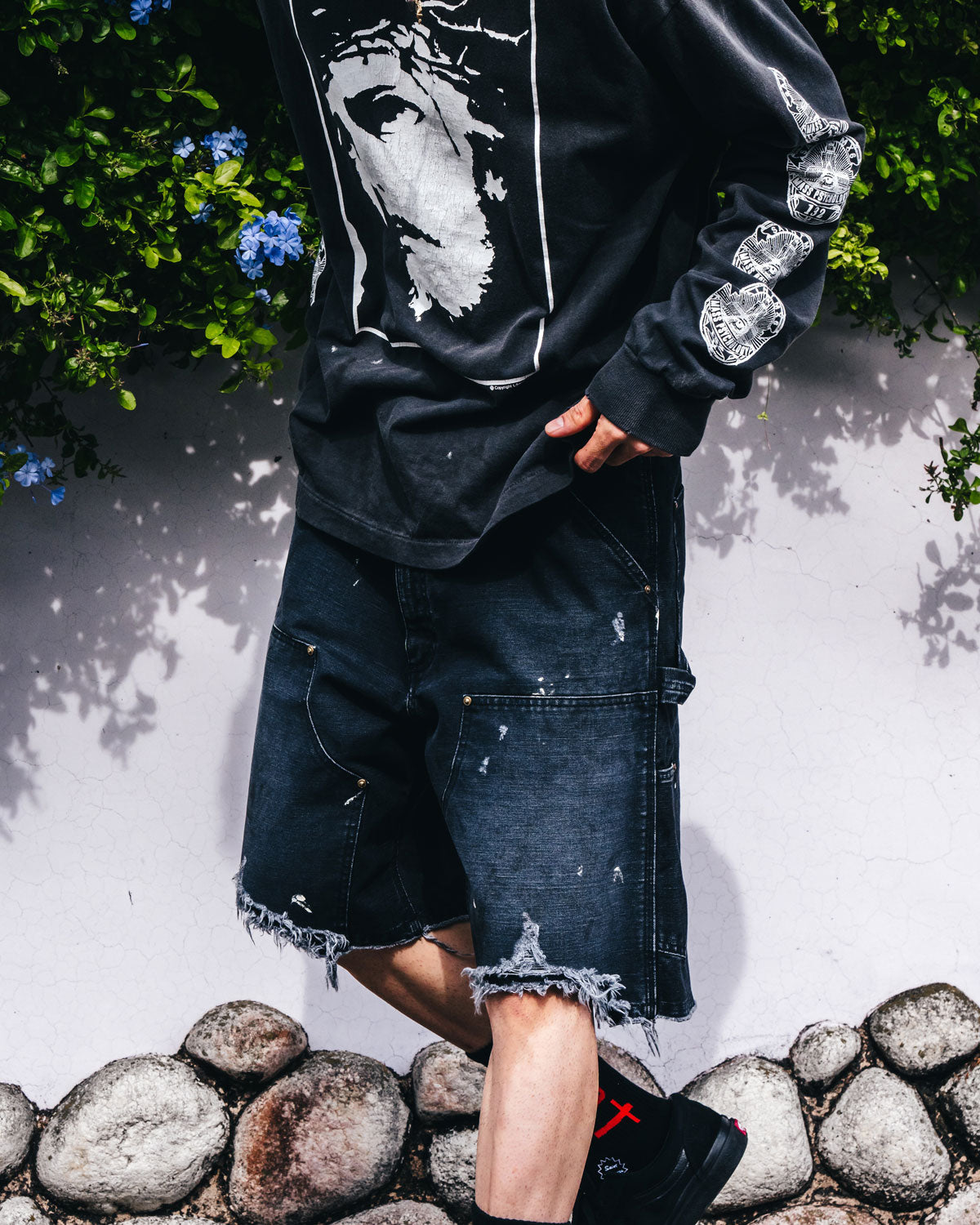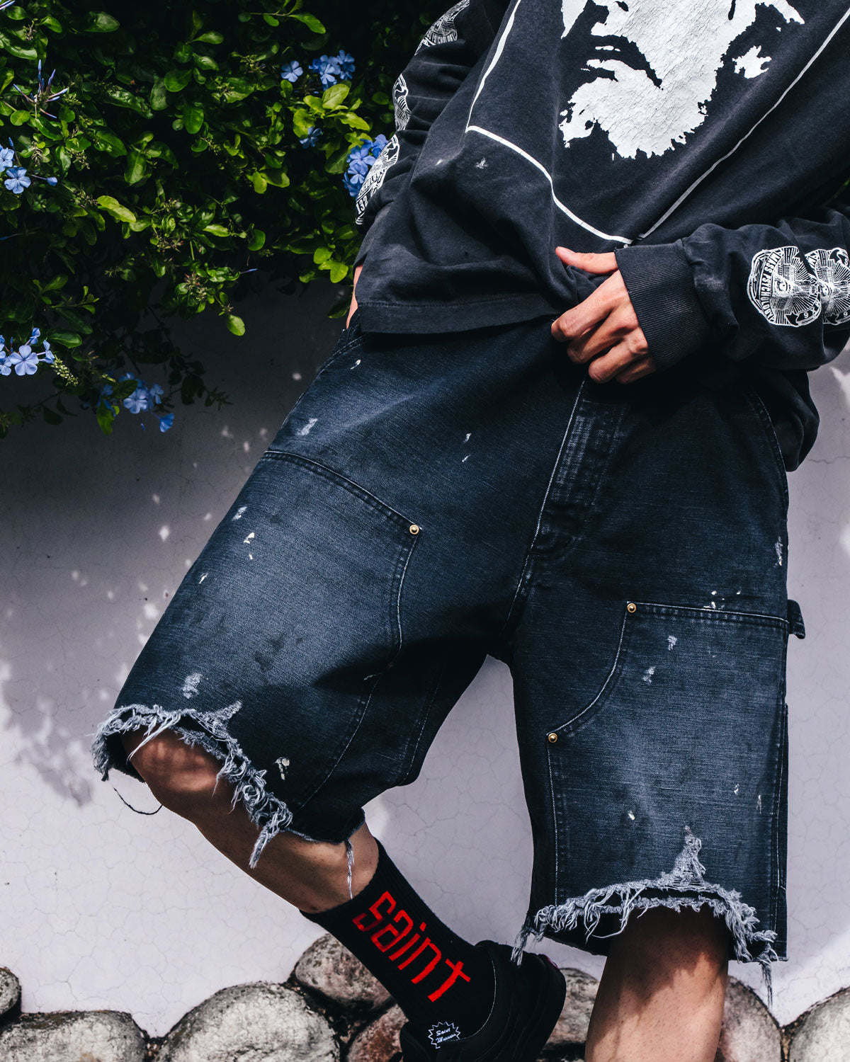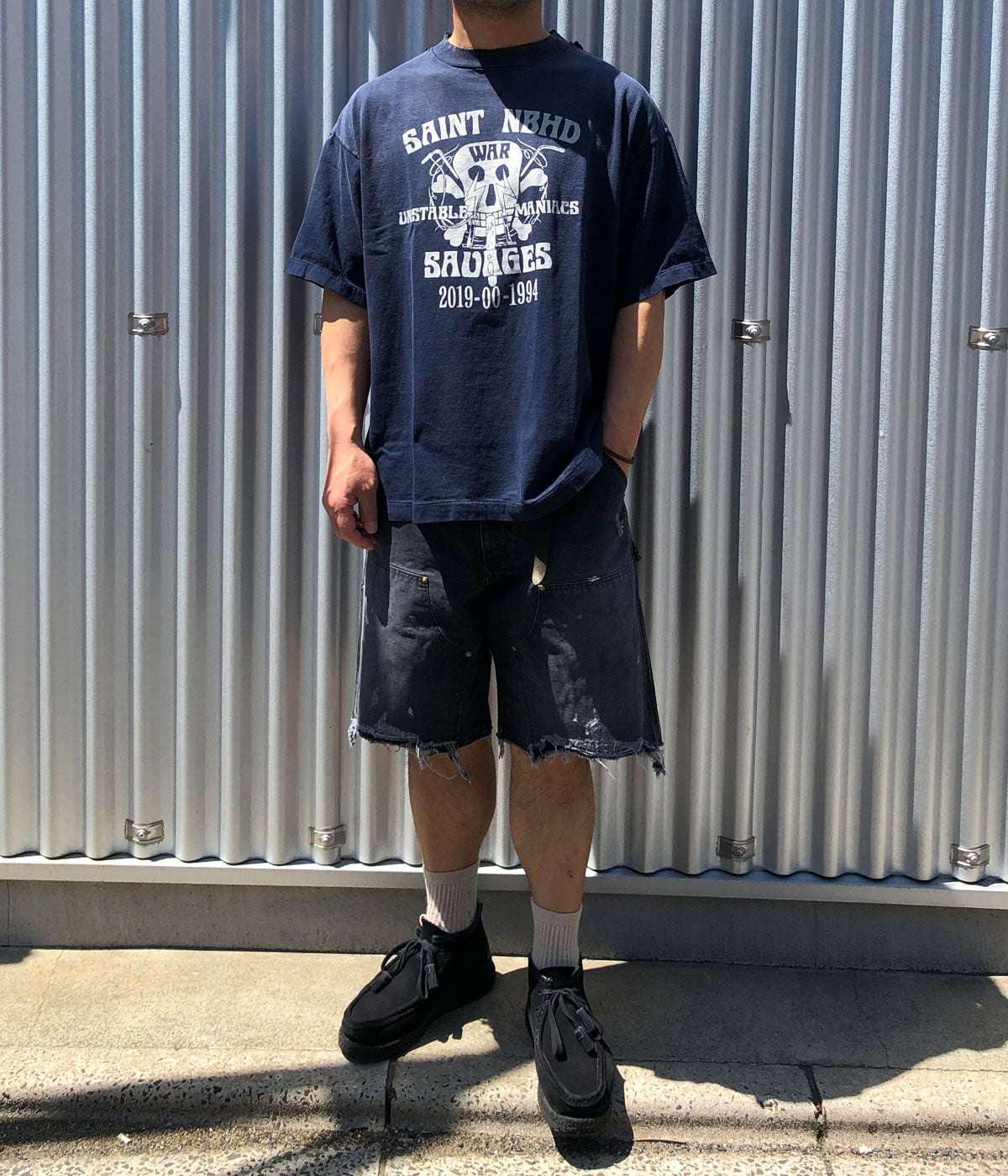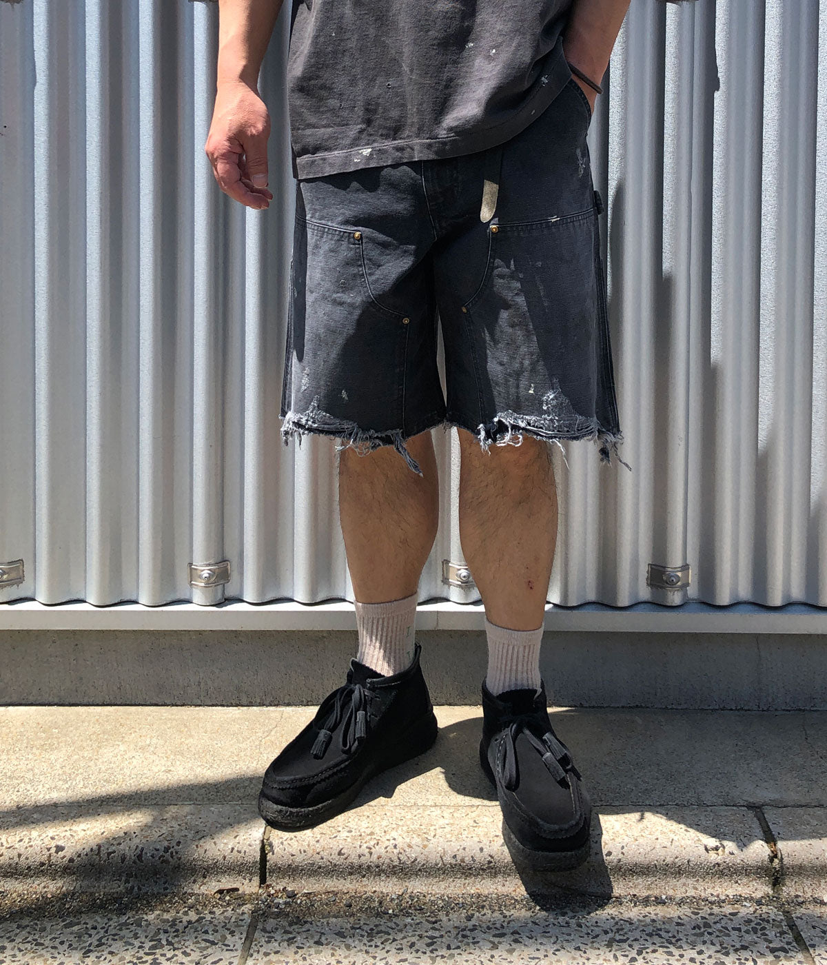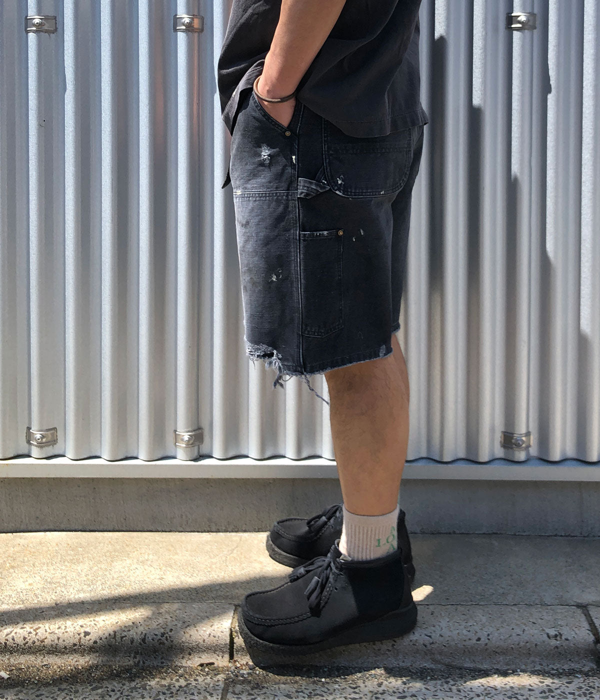 SAINT MICHAELから、DOUBLE KNEE SHORTS/BLACKが入荷しました。ダック素材で仕上げたダブルニーパンツをカットオフしダメージ加工を施したアイテム。