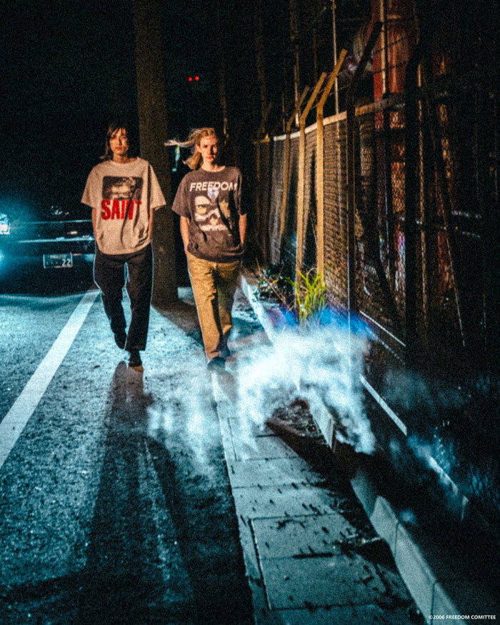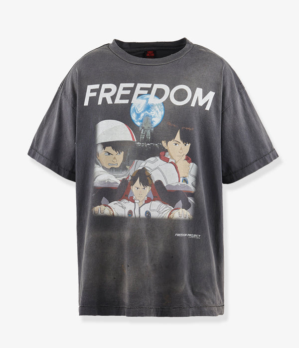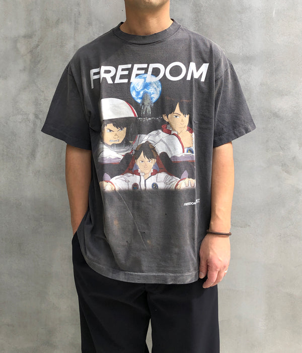 SAINT MICHAELから、FD_SS TEE/FREEDOM/BLACKが入荷しました。アニメ作品、FREEDOMとのコラボレーションデザインによる半袖Tシャツ。世界観を感じるグラフィック、褪色したブラックボディによるヴィンテージ感と、フェード感のあるプリントの質感がポイント。