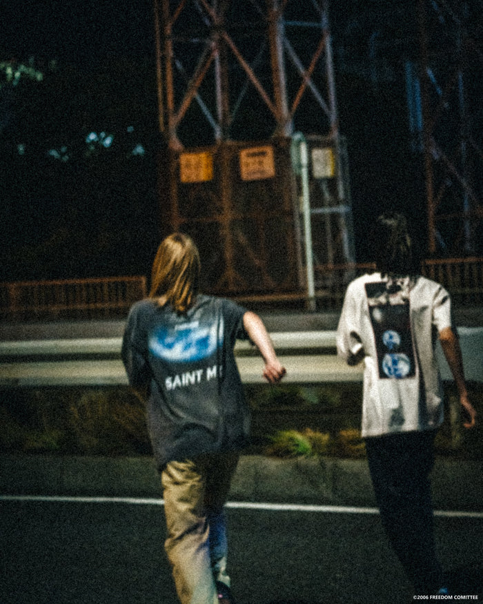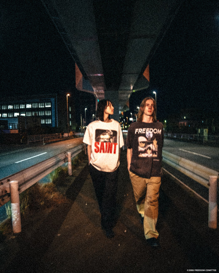 SAINT MICHAELから、FD_SS TEE/SAINT/WHITEが入荷しました。アニメ作品、FREEDOMとのコラボレーションデザインによる半袖Tシャツ。世界観を感じるグラフィック、褪色したホワイトボディによるヴィンテージ感と、フェード感のあるプリントの質感がポイント。