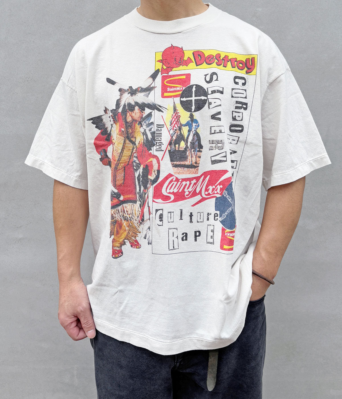 SAINT MICHAELから、JR_SS T-SHIRT/DESTROY/WHITEが入荷しました。©SAINT Mxxxxxxは、Sex Pistolsのコラージュ作品を手がけ、パンクカルチャーの美学を決定づけたアーティスト/グラフィック・デザイナーのJamie Reidとのコラボレーションコレクションを3月20日(祝・金)より発売いたします。本コレクションでは、Jamie Reidの象徴的なアーカイブをもとに、©SAINT Mxxxxxxの代名詞でもあるTシャツへと再構築。代表的なアートワークに加え、©SAINT Mxxxxxxのデザイナーが新たな解釈で特別に手を加えたスペシャルピースも展開します。Jamie Reidのビジュアルに、©SAINT Mxxxxxxが追求してきたリアルなヴィンテージ加工を融合させたラインアップとなっています。
